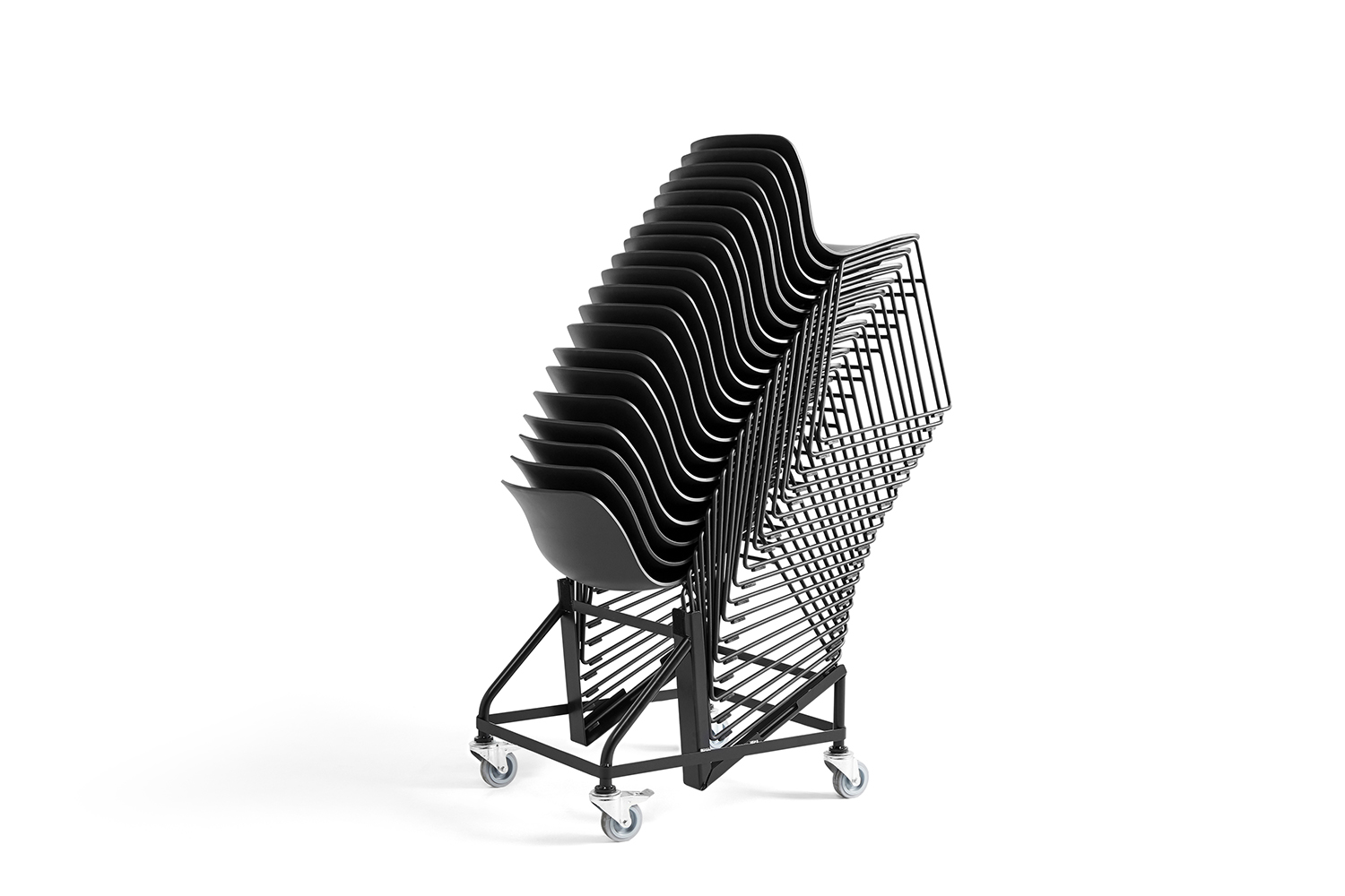 Dieser Stuhl ist erhältlich mit einem stabilen Kufengestell und einer gebogenen Sitzschale für exzellenten Komfort. Er ist stabelbar und sowohl Bodenverbinder als auch Transportwagen sind optional verfügbar.