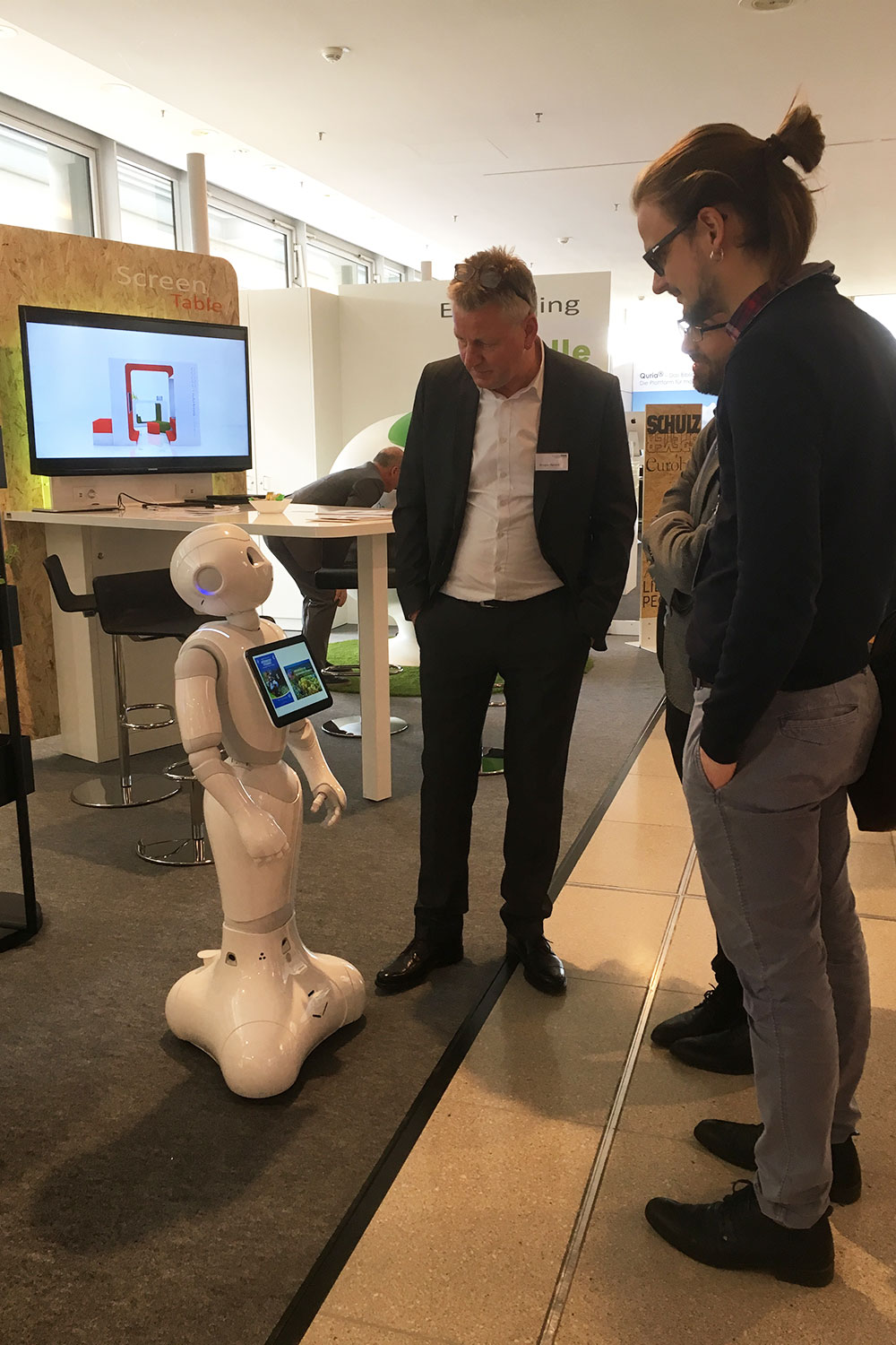 Auch Pepper, unser Roboter auf dem Stand sorgte für lebhaftes Interesse bei den Besuchern. Er kann unterhalten, aber auch hilfreich dem Nutzer bei seinem Besuch in der Bibliothek zur Seite stehen. Der E-Bulle sorgt für eine Raum in Raum Lösung für eine Person. Im E-Bulle kann man sich konzentriert zurückziehen und am integrierten Bildschirm arbeiten, telefonieren aber auch bei Videos entspannen oder Sprachen lernen.