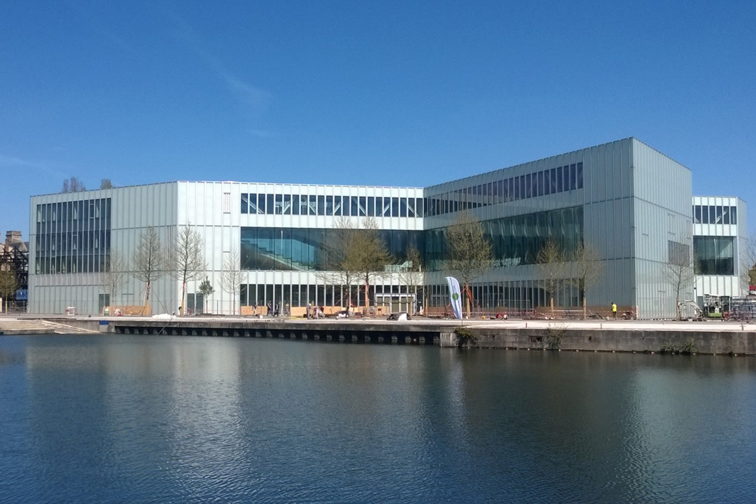 Das futuristische Gebäude in Caen mit Blick auf den Saint-Pierre-See hat eine Fläche von 12000 m², die sich über 4 Ebenen erstreckt. Von Westen nach Osten offen gestaltet, kann das Tageslicht großzügig einfallen. Mit seiner durchgehenden Transparenz und unversperrten horizontalen Offenheit soll es einem städtischen Forum gleichen.