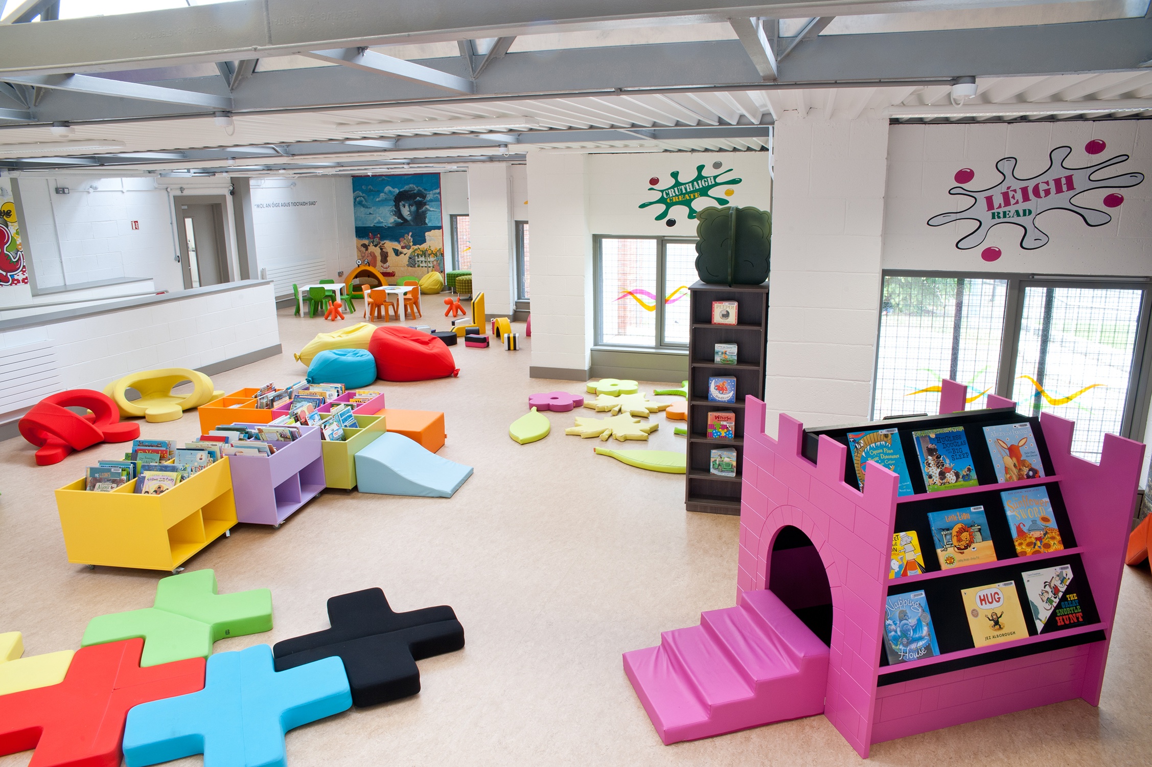 Eltern und Kinder sind eine besonders wichtige Benutzergruppe der Bibliothek. Ziel war, einen einladenden und speziellen Raum für sie zu schaffen, wobei ein Gleichgewicht zwischen der Unabhängigkeit sowie dem Spiel- und Erforschungsdrang der Kinder und den notwendigen Sicherheits- und Kontrollmaßnahmen bestehen bleiben musste. Die Einrichtungsauswahl ist dynamisch, interaktiv und modern, um die Kinder zu begeistern und sie Erfahrungen machen zu lassen, die alle Erwartungen übertrifft. Dabei ist es äußerst wichtig, dass die Kinderabteilung der Bibliothek ihre Bedürfnisse wirklich erfüllt und nicht nur eine kleinere Version des Raumes für die Erwachsenen ist.
