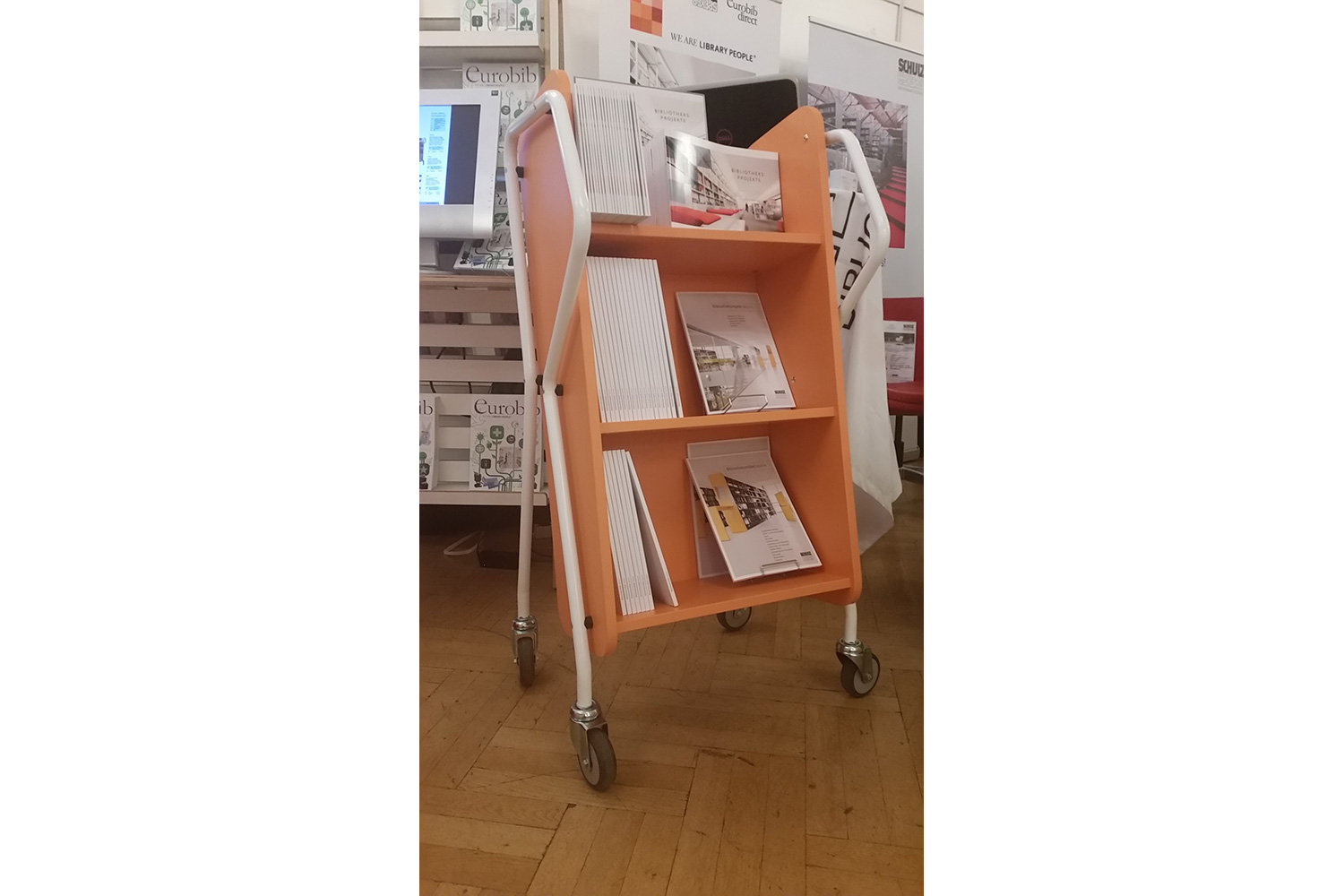 Weiteres haben wir ein Fahrbares UNIFLEX Regal mit viel Zubehör (Av-Medien Aufbewahrung, Zeitschriftenaufbewahrung,...) präsentiert.