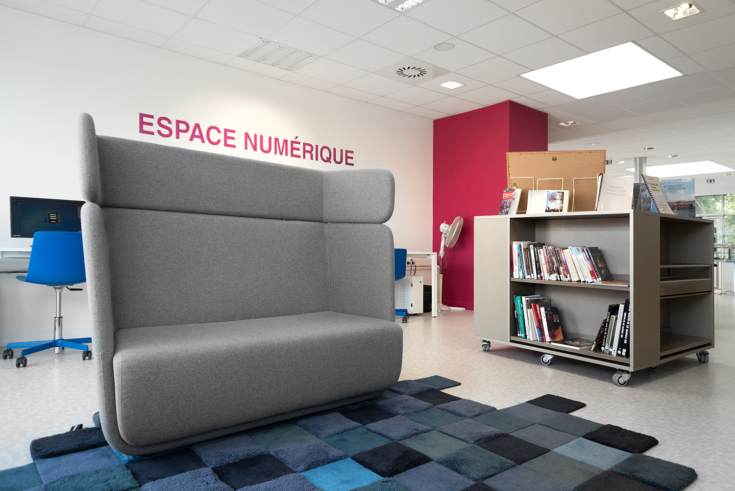 Basket verfügt über ein integriertes modulares System mit zwei verschiedenen Rückenhöhen, sodass sowohl Stühle als auch Sofas an die übrige Bibliothekseinrichtung angepasst werden können. Die Stühle können entweder mit statischem Fuß oder als Drehstuhl erworben werden.
