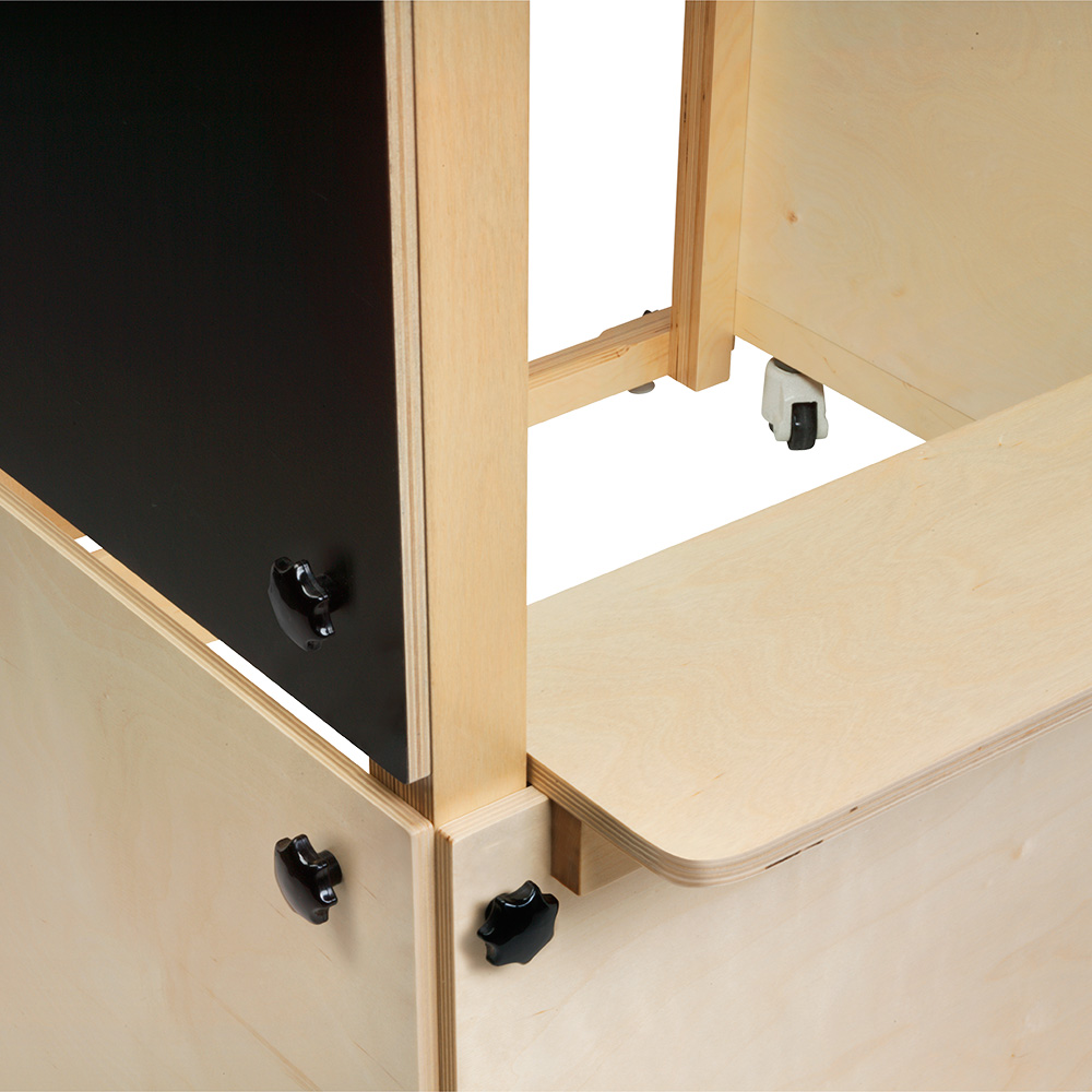 Cubik ist ein vielseitiges System zur Bühnengestaltung. Cubik besteht aus einem Rahmen mit Wandelementen aus Sperrholz und aus schwarzem Laminat mit Schreib-/Magnetfunktion.