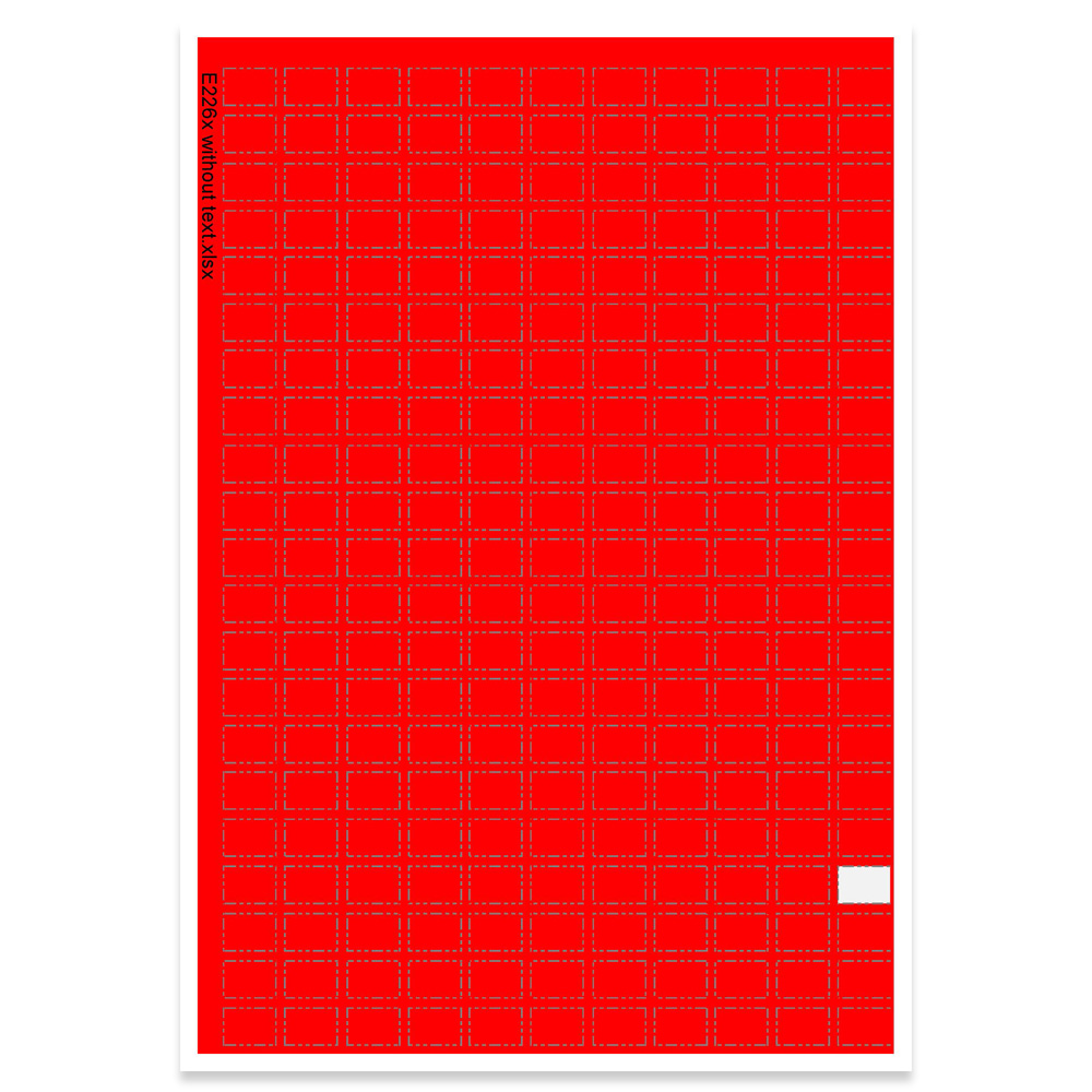 Selbstklebende, ausgestanzte Etiketten in Bögen für beliebigen Text, z. B. Klassifizierungssystem.