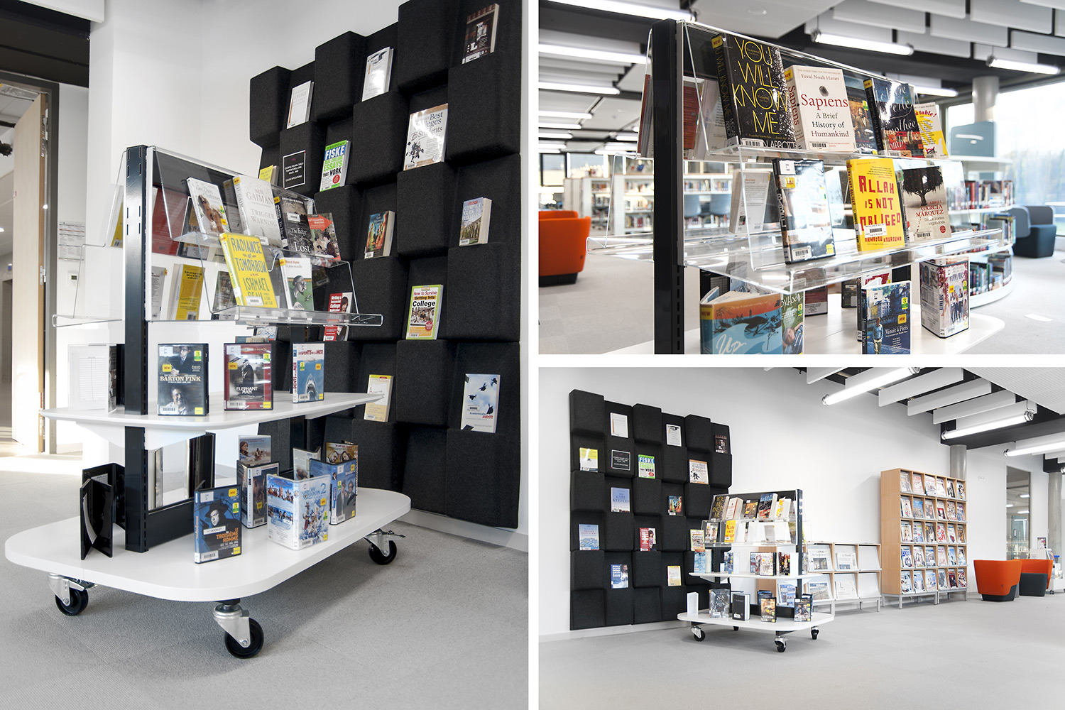 Unser Präsentationssystem Expo 60/30 bietet unendliche Möglichkeiten für die Präsentation. Das Design dieses Produktes zieht die Benutzer an, indem es die Bücher frontal präsentiert. So kann eine Themenausstellung entstehen durch die Kombination von Büchern mit passenden Objekten, die Interesse wecken.