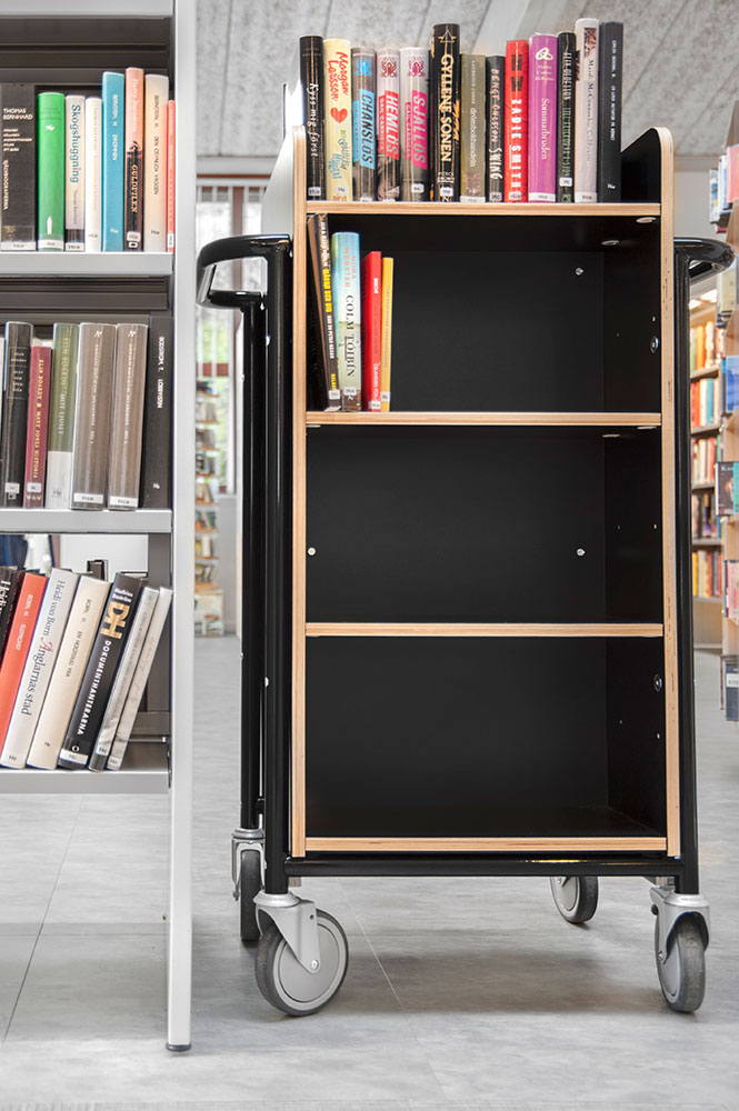 Diesen Bücherwagen kann man als fahrbares Miniregalsystem einsetzen - überall in der Bibliothek, wo es gerade gebraucht wird.