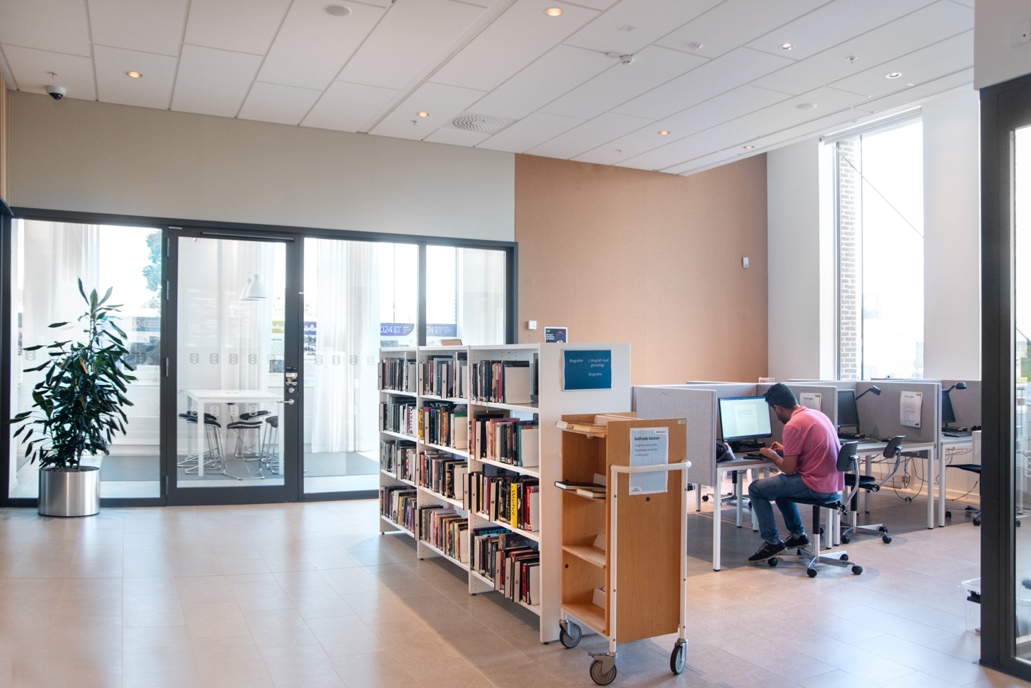 Diesen Bücherwagen kann man als fahrbares Miniregalsystem einsetzen - überall in der Bibliothek, wo es gerade gebraucht wird.