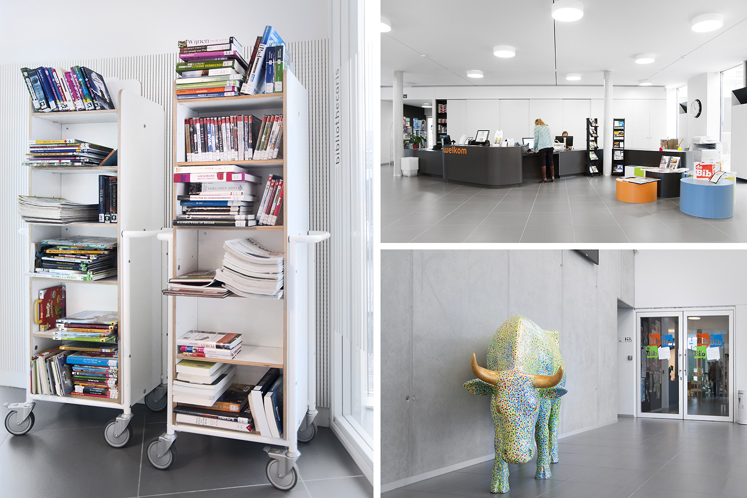 Diesen Bücherwagen kann man als mobiles Regalsystem einsetzen - überall in der Bibliothek, wo es gerade gebraucht wird. Perfekt als Rückgabe-Station, für reservierte Bücher oder als Ausstellung von neue Bücher.