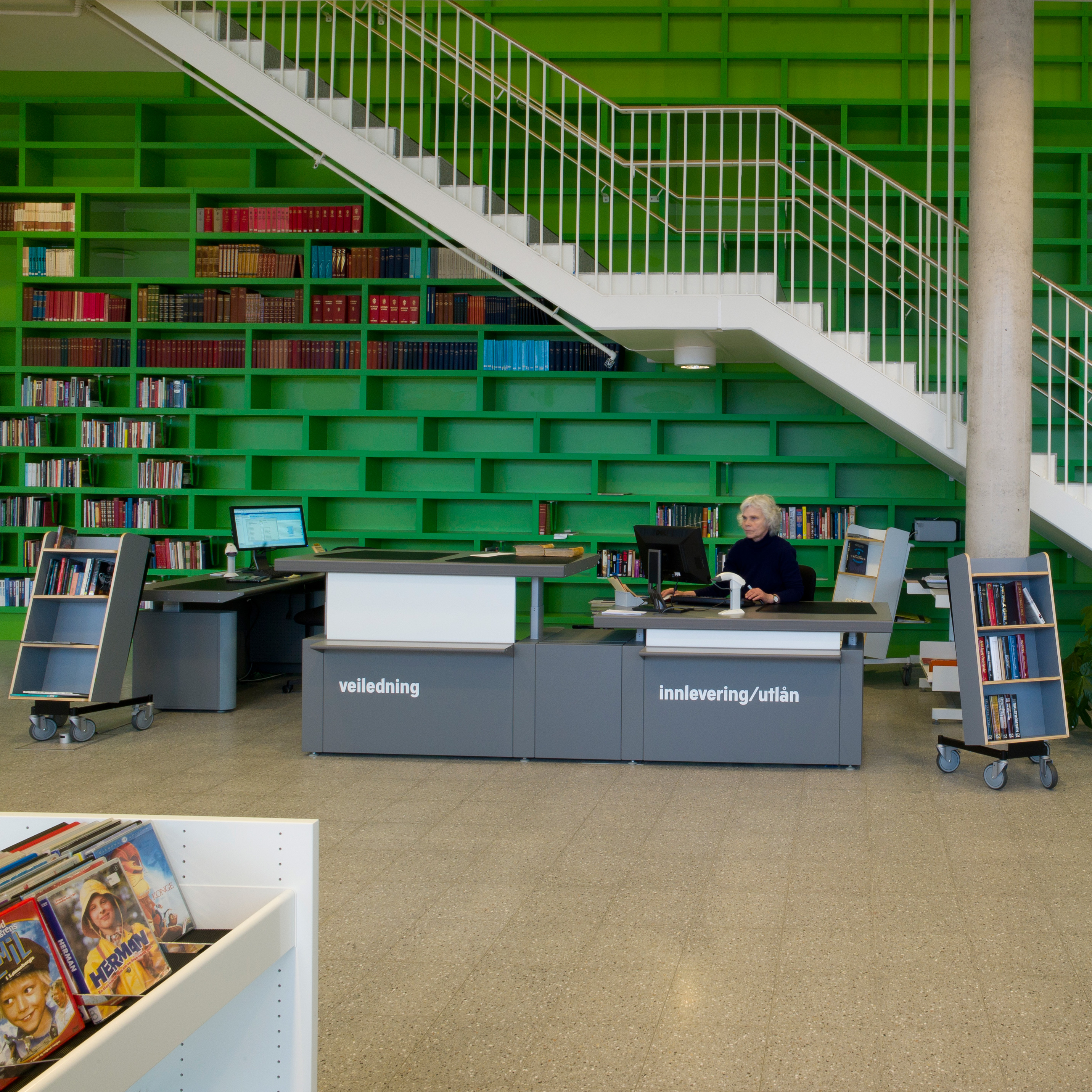 Die Neigung des Bücherwagens sorgt für eine sichere Medienunterbringung und bietet eine gute Übersicht über die jeweiligen Bücher.