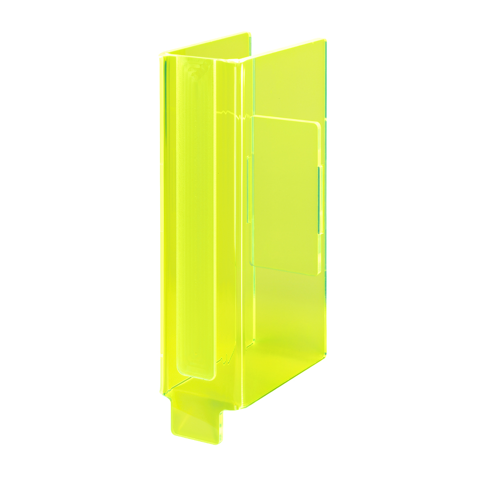 Regalkennungen aus hochwertiger Glasoptik oder fluoreszierendes Neonacryl hergestellt.