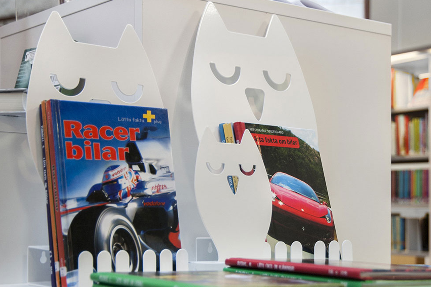 Machen eine Sammlung von unseren vielen Buchdisplays in verschiedenen Farben und Figuren – die Kinderwerden sie lieben!