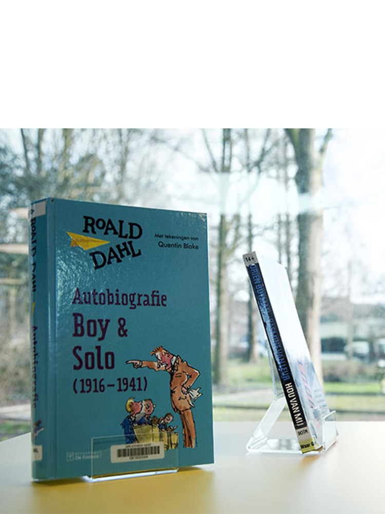 Linnéa Präsentationsständer hebt die Bücher vom Tisch für eine bessere Belichtung.