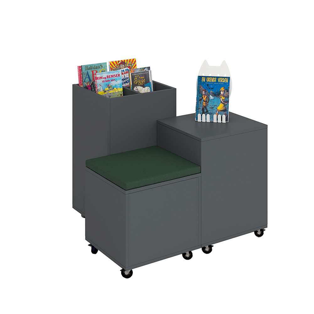 Maria ist eine Serie von Podien mit Trog erhältlich in zwei Größen (50 cm und XL 64 cm) und drei Höhen (Mini, Midi und Maxi) für flexible Bibliothekseinrichtungen.