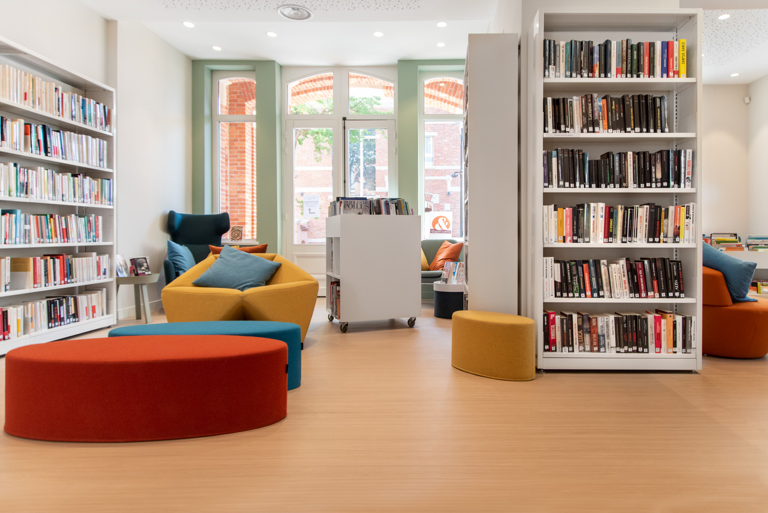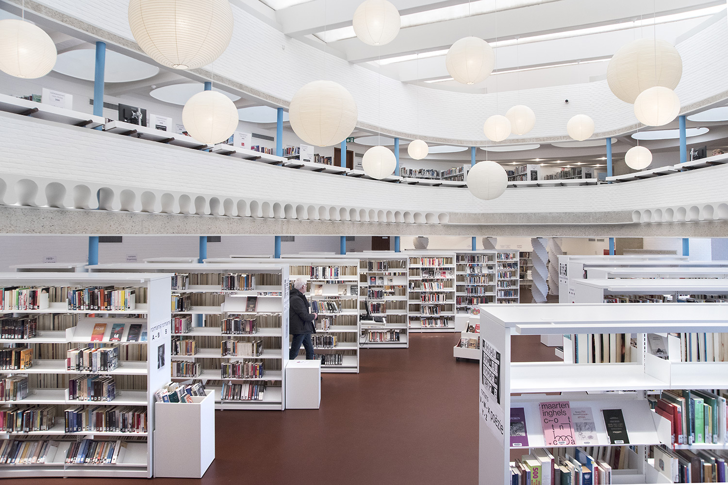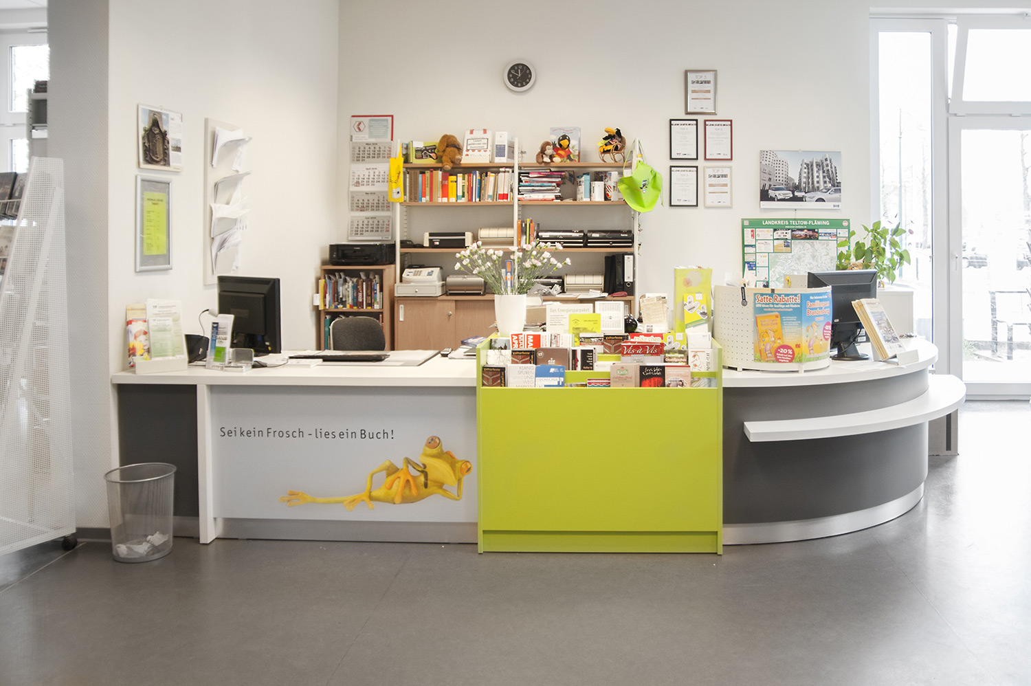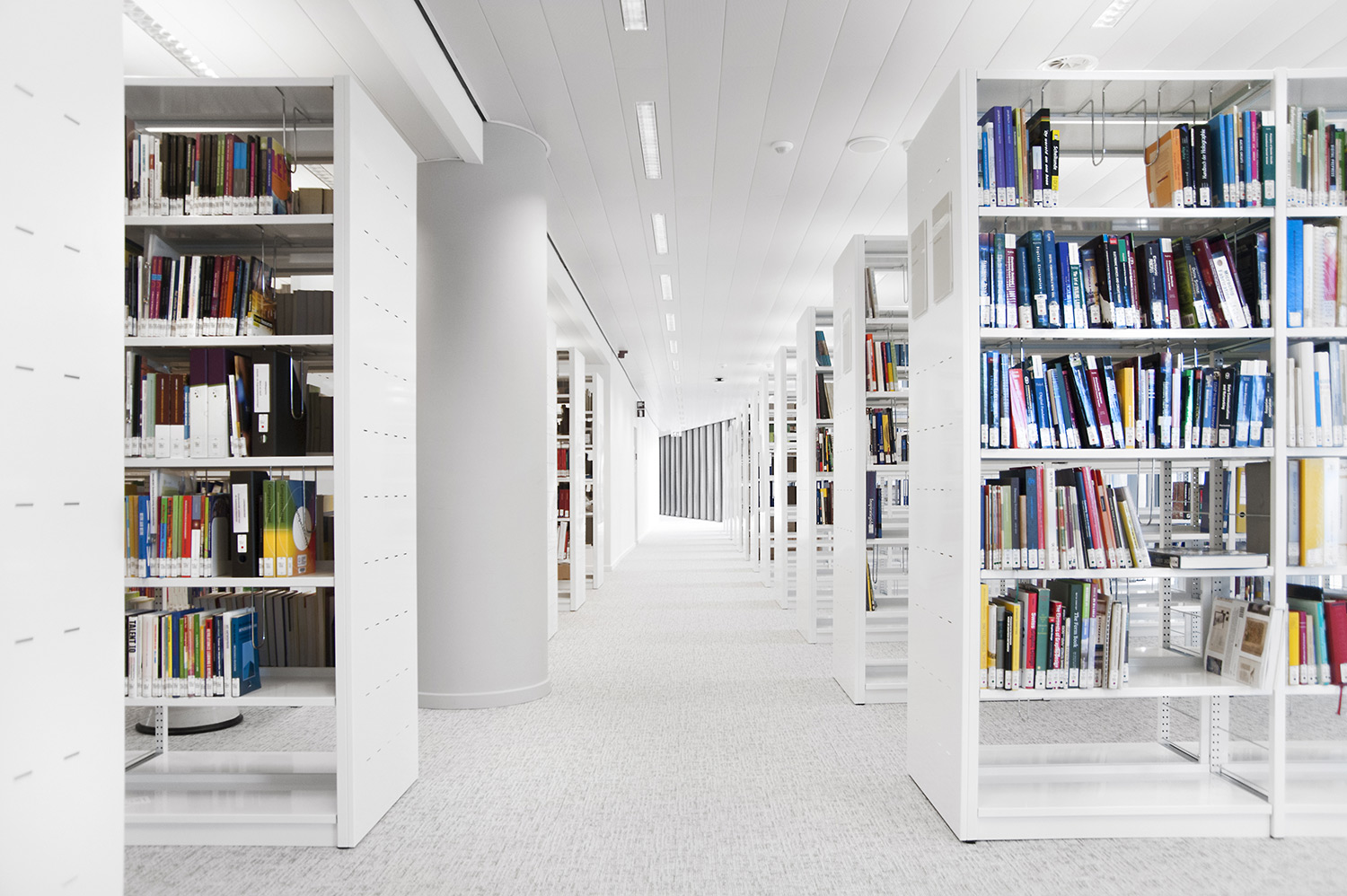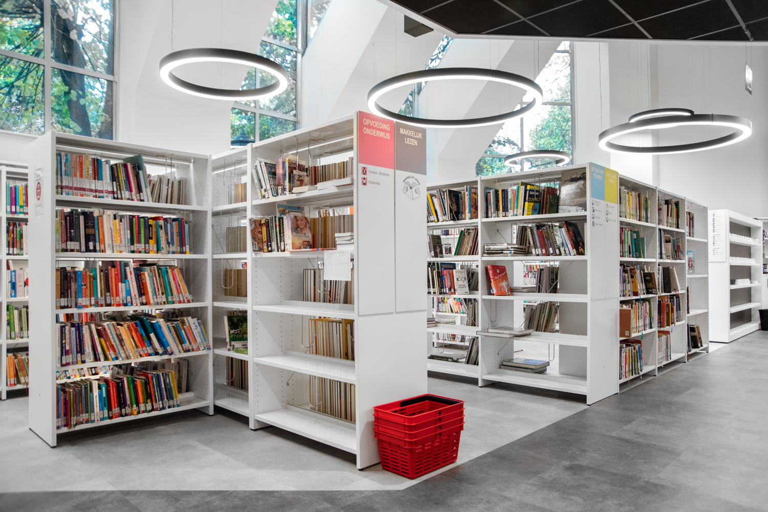 Die Neigung des Bücherwagens sorgt für eine sichere Medienunterbringung und bietet eine gute Übersicht über die jeweiligen Bücher.