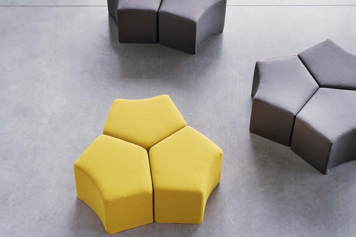 Pause von Softline ist ein kombiniertes Bibliotheksmöbel, das als Einzelobjekt oder in Gruppen kombiniert zum Entspannen, Arbeiten oder Spielen funktioniert.
