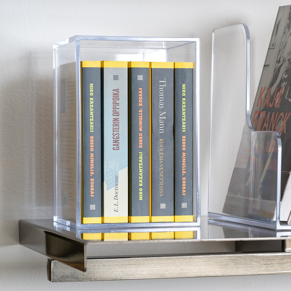 Eine Box, zwei Verwendungen - Verwenden Sie es mit der Öffnung nach oben können Sie mit verschiedenen Produkten oder Give-aways dies befüllen. Verwenden Sie es mit der Öffnung nach unten können Sie Broschüren, Bücher, Zeitschriften auf der Oberseite präsentieren.