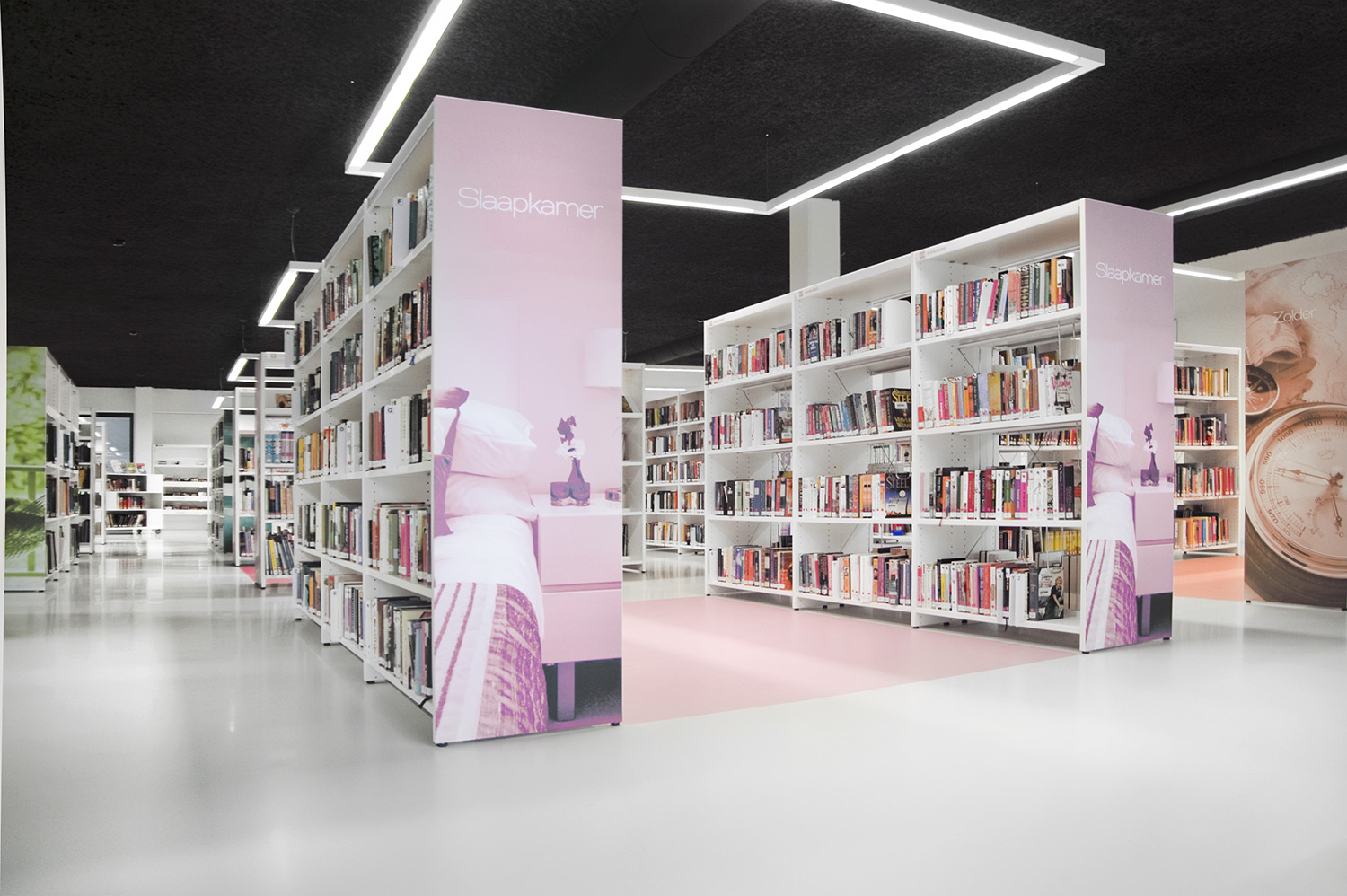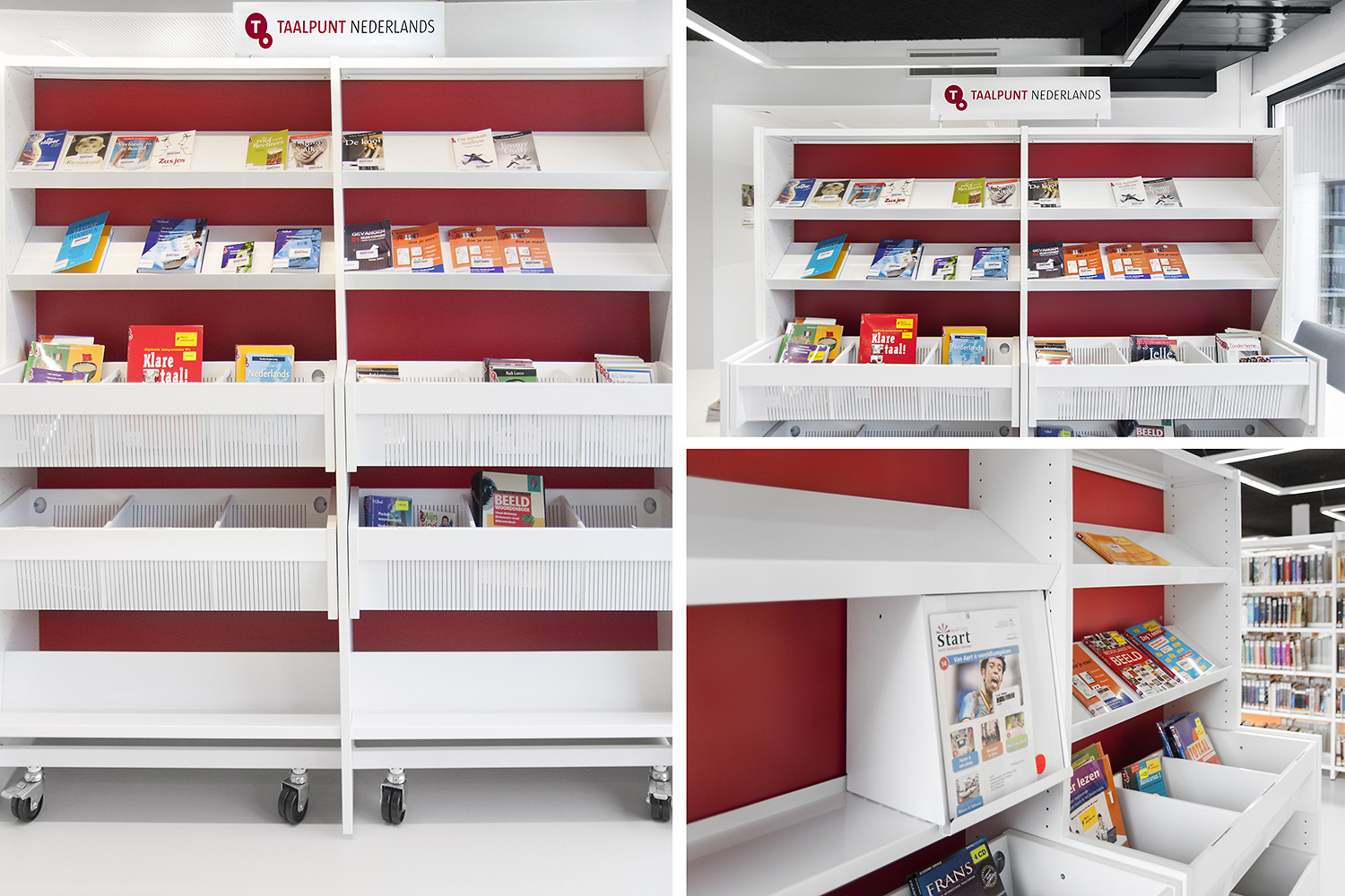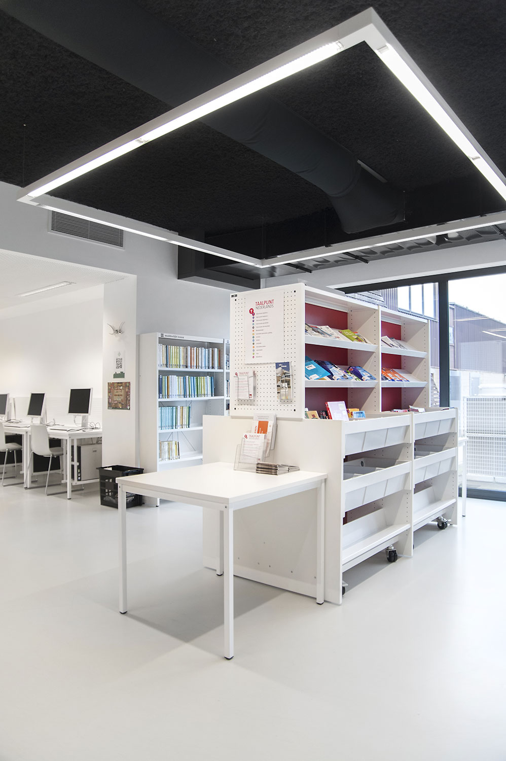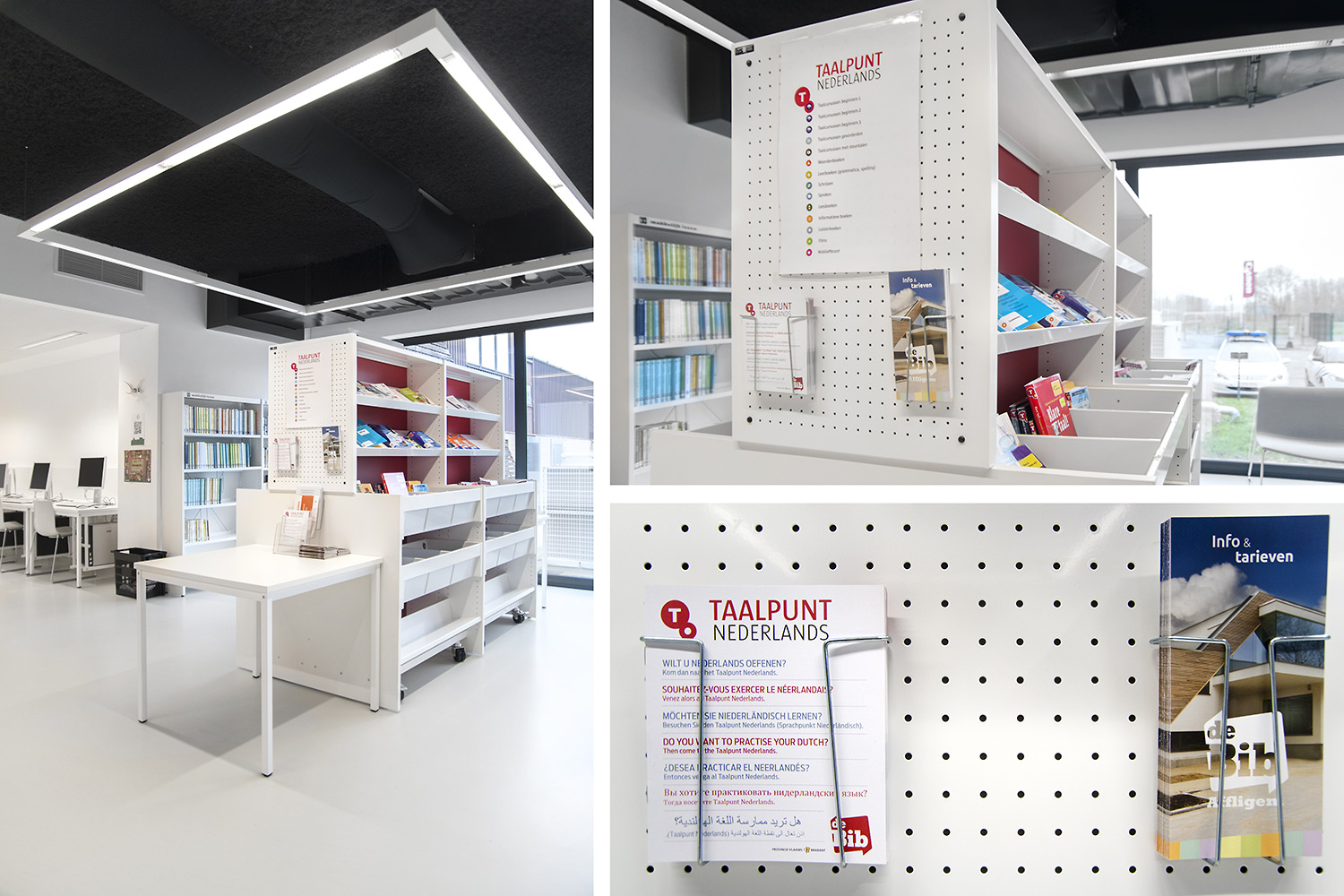 Für die neue Bibliothek in Affligem wurde vom Architekturbüro Pointiv ein klares Innenausstattungs-konzept entworfen. Dieses Konzept bestand darin, die Bibliothek als eine Reflexion der täglichen häuslichen Umgebung zu gestalten. Das Ergebnis zeigt, dass wir auf Grund der Qualität unserer Produkte und unserer Befähigung, Designlösungen anzubieten, diese architektonische Vision erfüllen konnten.