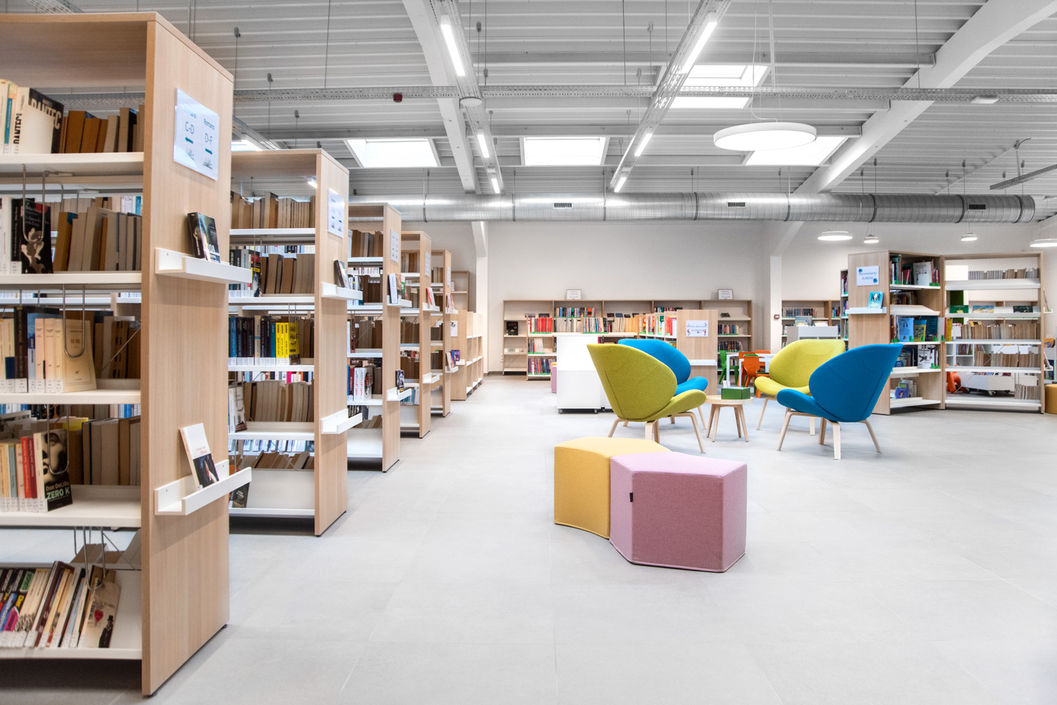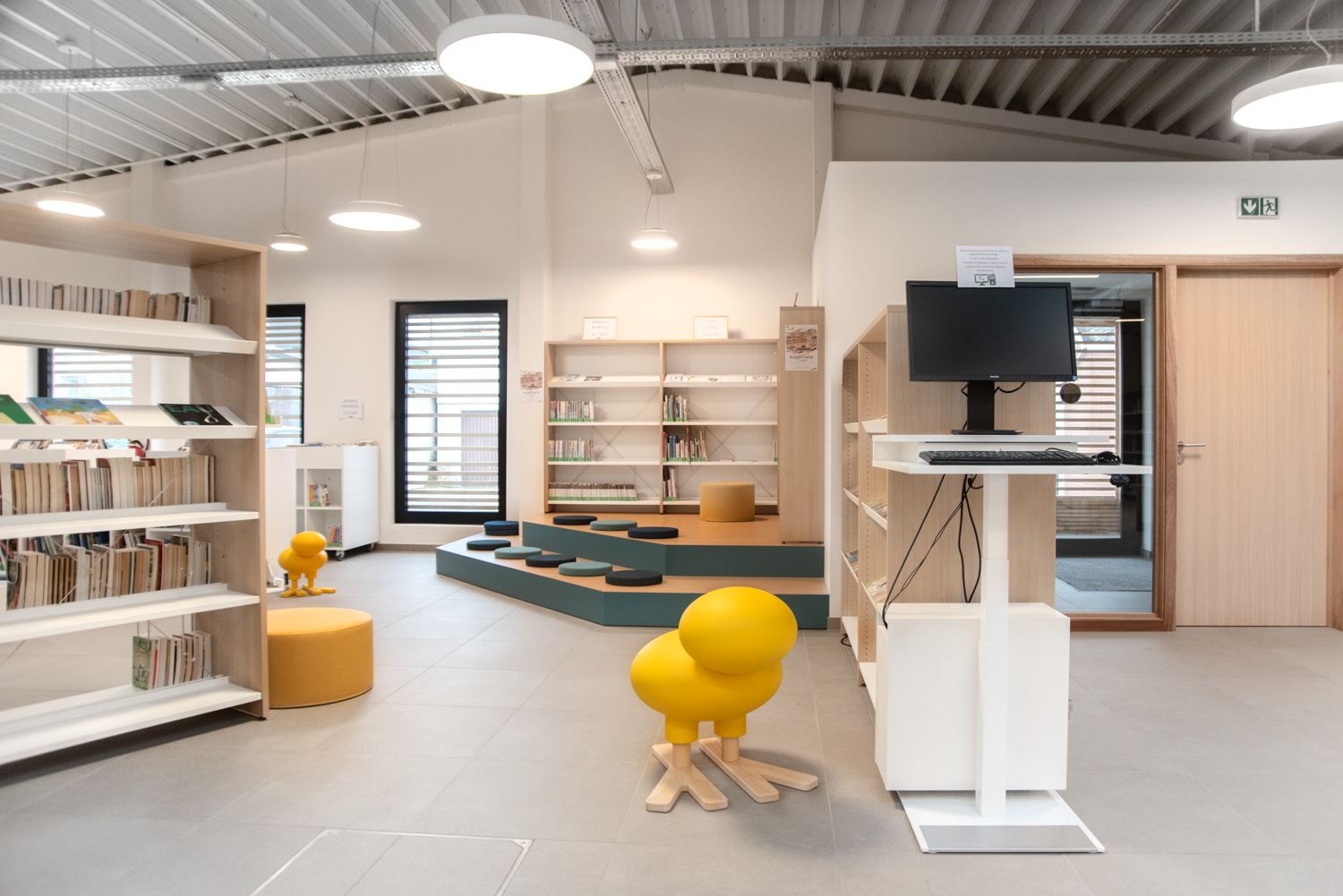 • Sitzgelegenheiten, die in der gesamten Bibliothek für Bequemlichkeit und Zugänglichkeit sorgen;