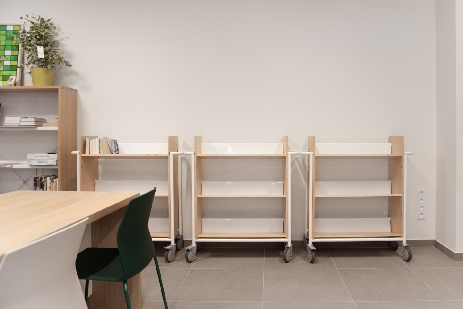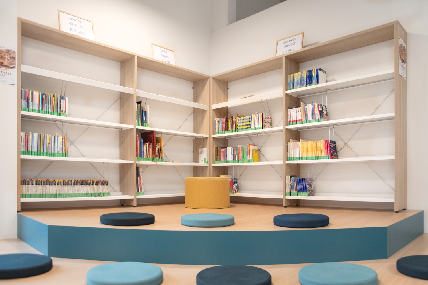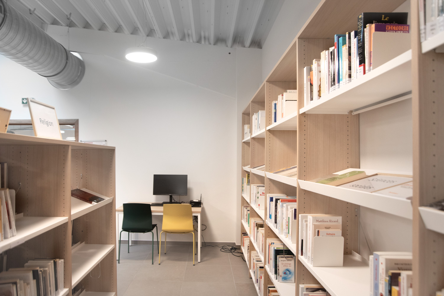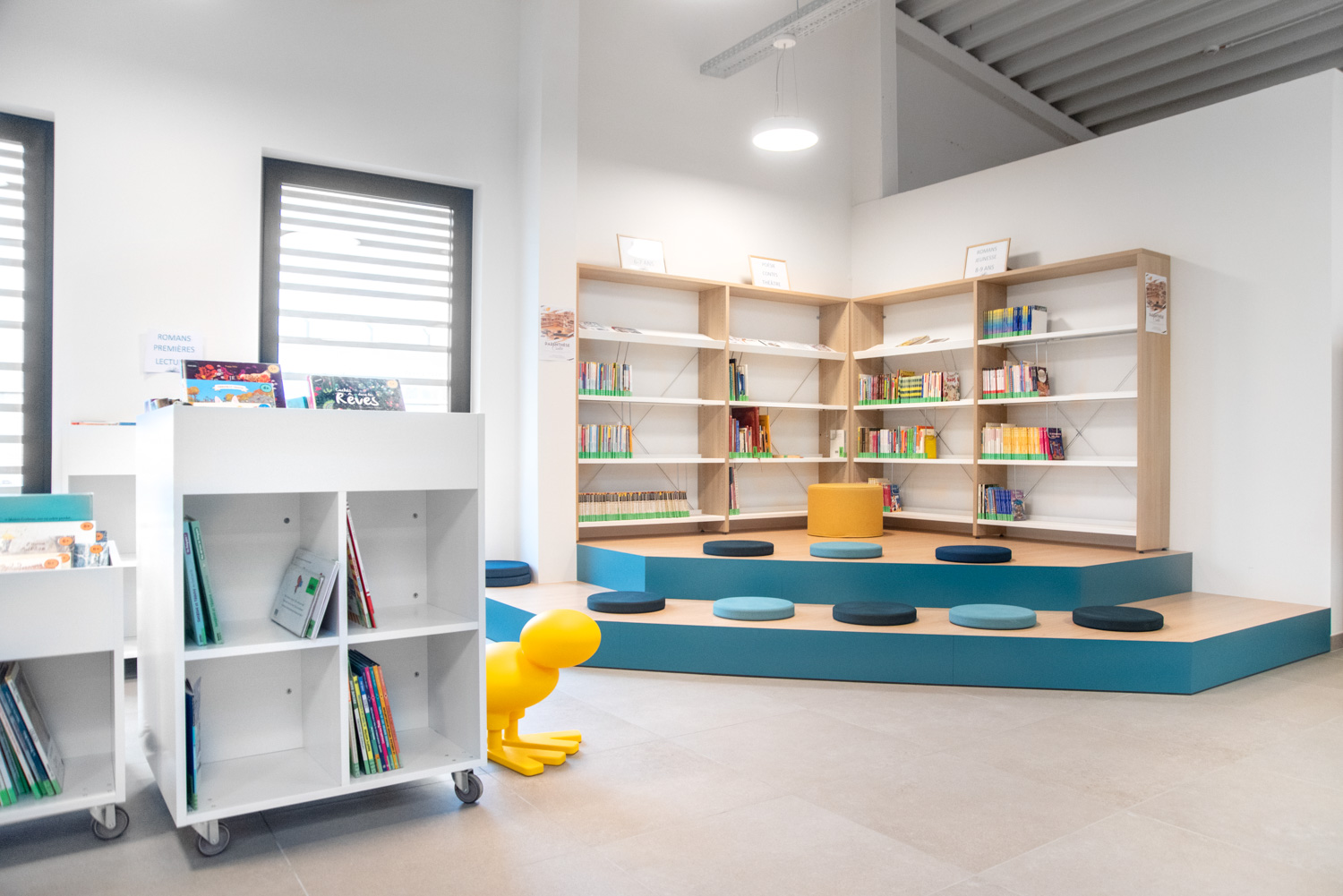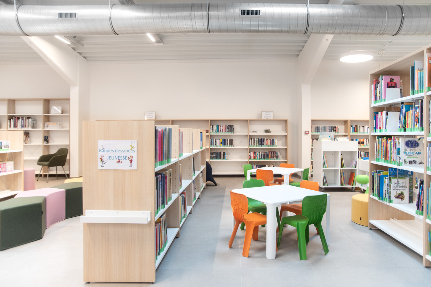 Bibliothekarin Christine Gillard erklärt: „Durch das Freilegen des Daches mit Öffnungen und ohne Zwischendecken haben wir eine bessere natürliche Beleuchtung erreicht. Die Entscheidung für Holzregale und Sitzgelegenheiten in warmen Farbtönen hat die von uns angestrebte freundliche Atmosphäre gefördert. Bei der Gestaltung des Raums hatten wir bestimmte Anforderungen, die Schulz Speyer erfolgreich erfüllt hat.“