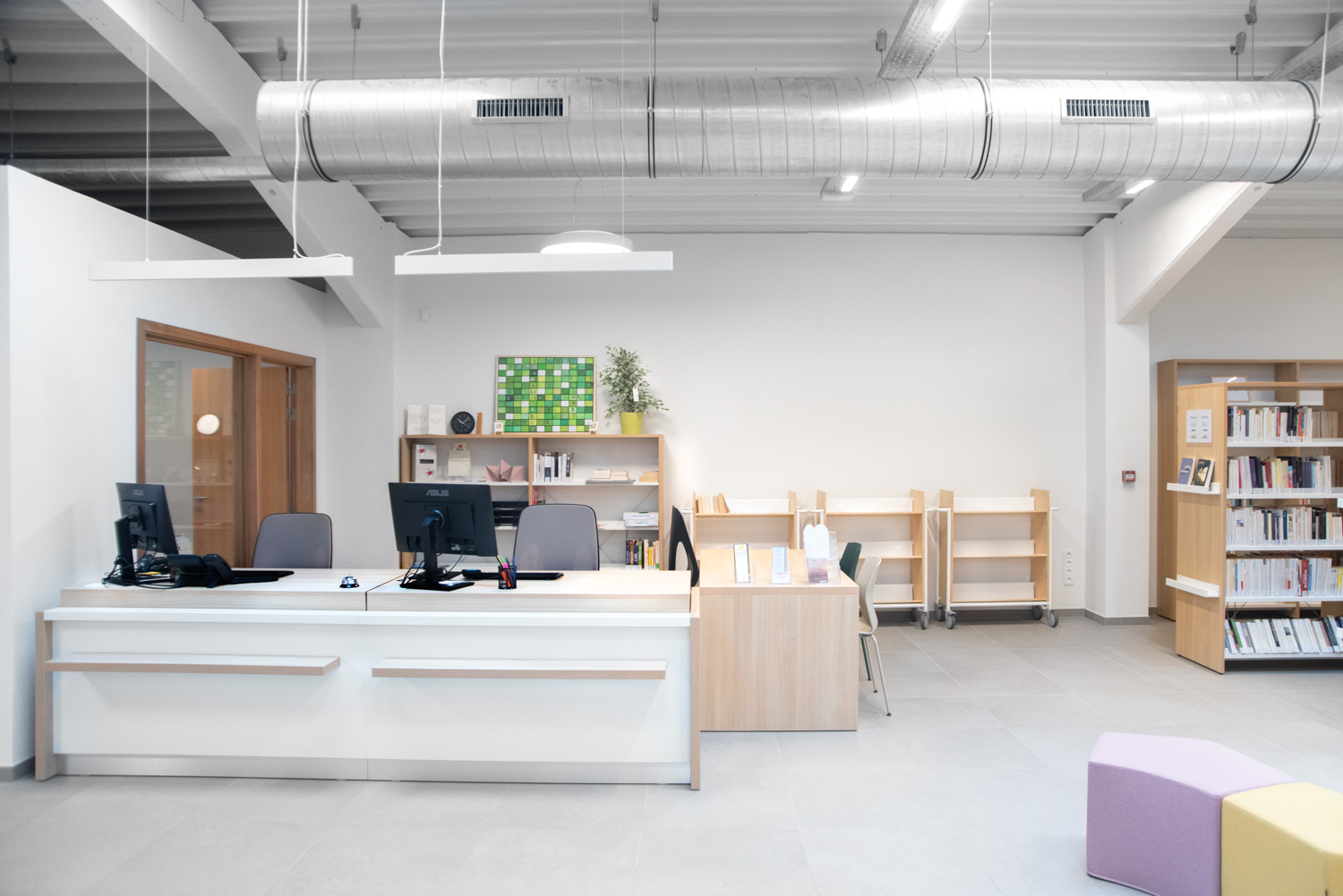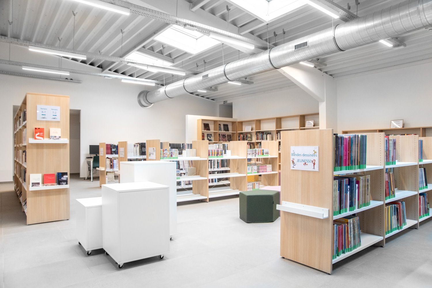 Seit Januar 2024 hat die Bibliothek von Eghezée in ihren neu eröffneten Räumlichkeiten ein neues Kapitel eingeleitet. Zuvor war sie durch Platzmangel eingeschränkt, doch dann bot sich die Gelegenheit, ein Gebäude im Stadtzentrum zu erwerben. Trotz des anfänglichen Verfalls entschieden sich die Bibliothekare für ein industrielles Flair bei der technischen Ausstattung, das durch eine warme, einladende Atmosphäre bei der Einrichtung und Gestaltung ergänzt wurde.