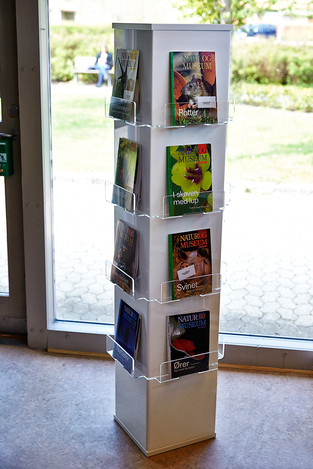 Die meisten der Regale bestehen aus Recyclingmaterial. Lykke Jørgin hat für Teile der Innenausstattung Sonderanfertigungen entworfen. Das maßgefertigte Mobiliar für die Raumtrennung dient sowohl als Highlight als auch zur Unterteilung der verschiedenen Themenbereiche.