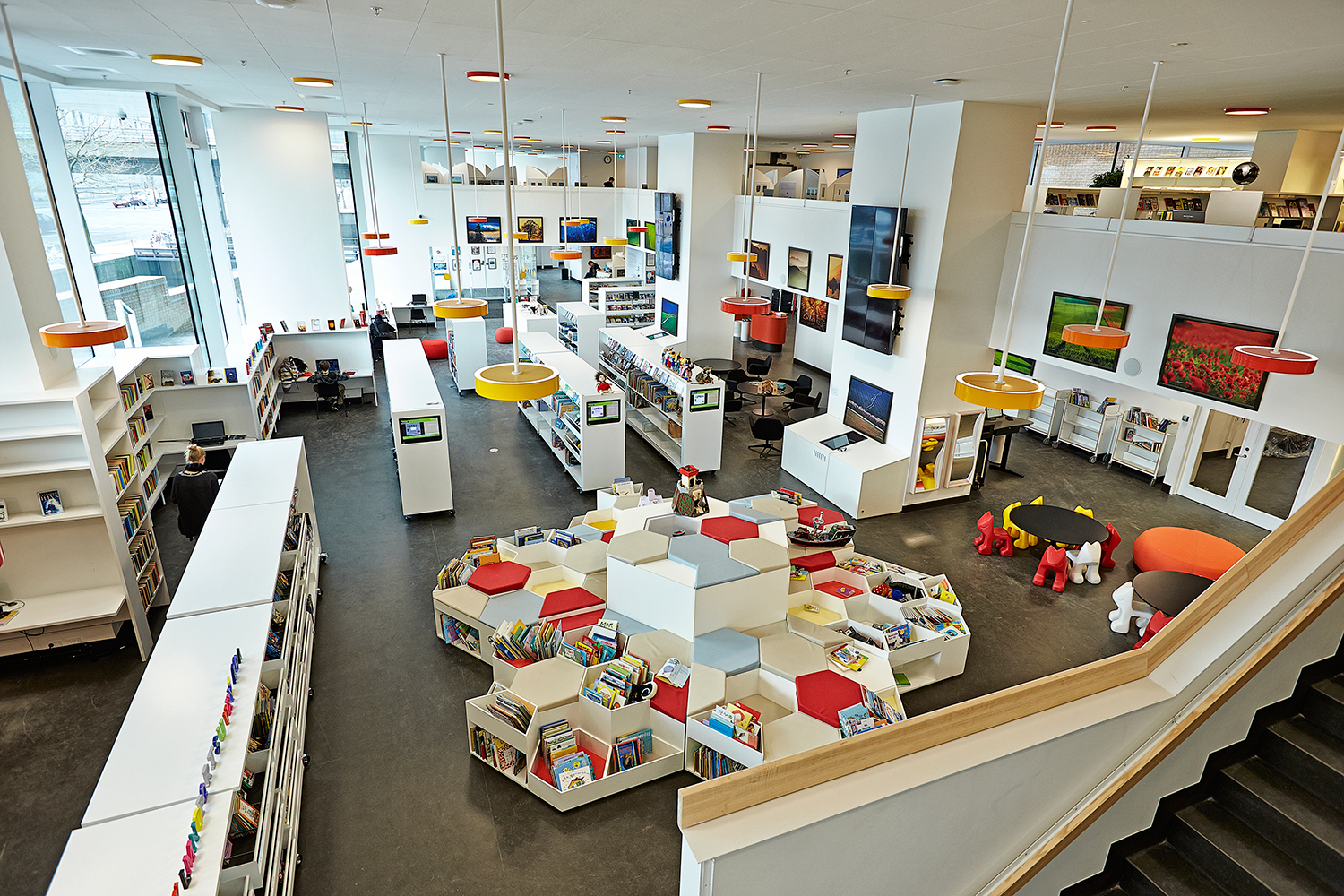 Die Bibliothek ist in vielerlei Hinsicht innovativ. Zum einen befinden sich hier drei unterschiedliche Einrichtungen unter einem Dach: eine öffentliche Bibliothek, eine Schulbibliothek für das benachbarte Ørestad-Gymnasium und ein Kulturzentrum für den Stadtteil.