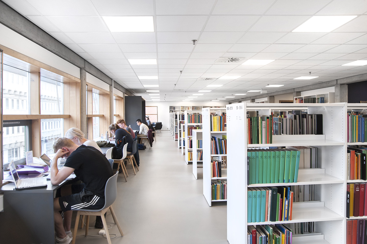 Im Rahmen einer umfangreichen Bibliotheksrenovierung sind bereits ein neues Treppenhaus mit Sitzmöbeln und eine Studierzone in der ersten Etage zur Nutzung freigegeben