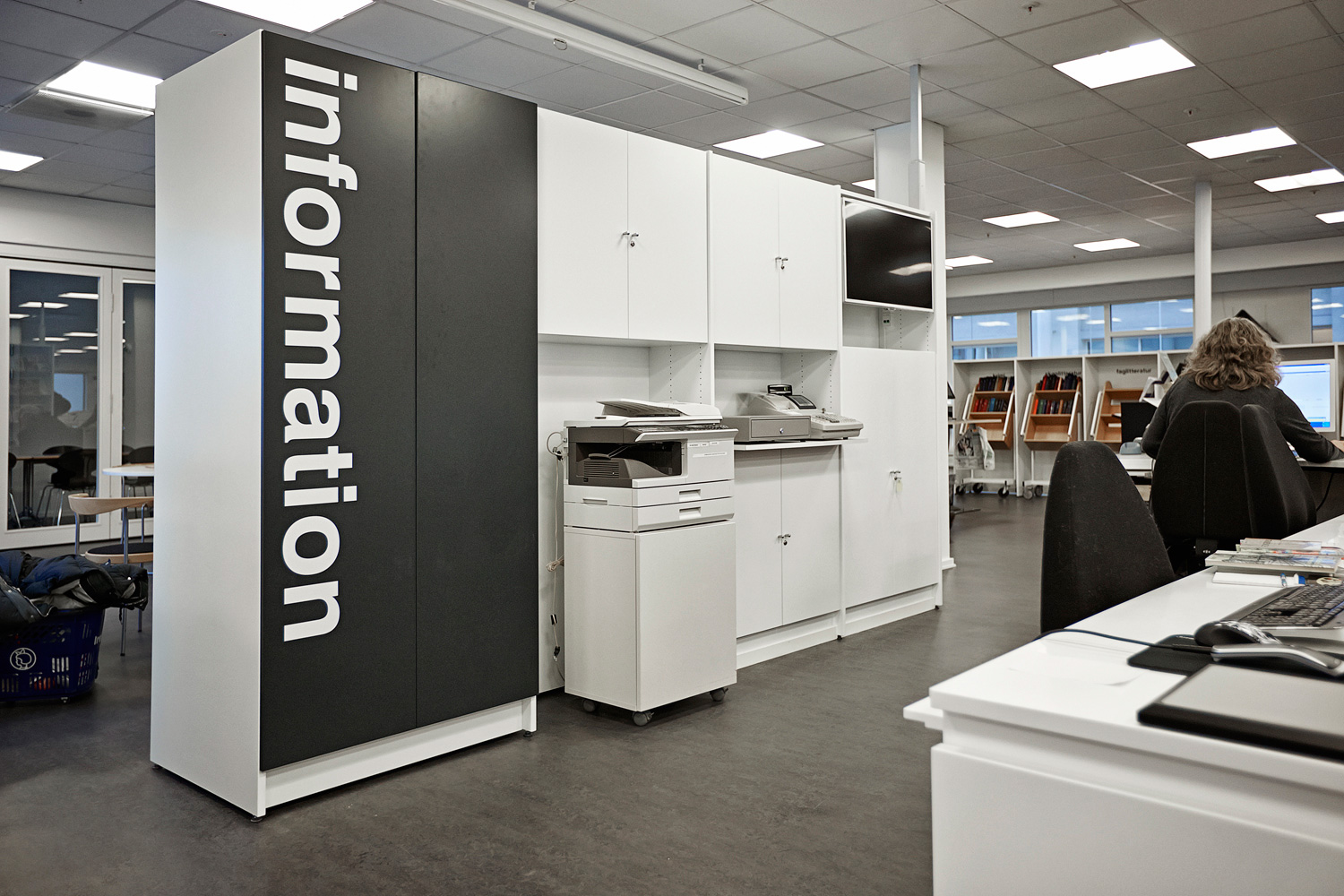 Als die Stadt Holte erfuhr, dass die Bibliothek verlegt und neu gebaut werden sollte, wurde die Möglichkeit für einen Neustart ergriffen. Da die neuen Räume jedoch einiges kleiner sind, wurden sehr viel höhere Anforderungen an die neue Gestaltung und das Design gestellt.