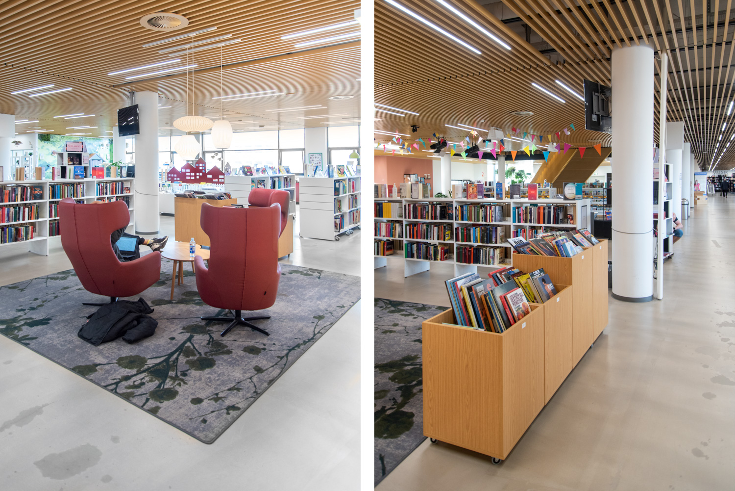 Die Odense Bibliothek hat eine Transformation durchlaufen, bei der die Aufgabe größtenteils darin bestand, viele verschiedene Bereiche und Wünsche zu einem zusammenhängenden Ganzen zusammenzubringen. Die vorhandenen Bibliotheksmöbel wurden für eine Vielzahl von Materialien wiederverwendet und boten gleichzeitig größere Möglichkeiten für Entspannung, Aktivitäten und Ausstellungen.