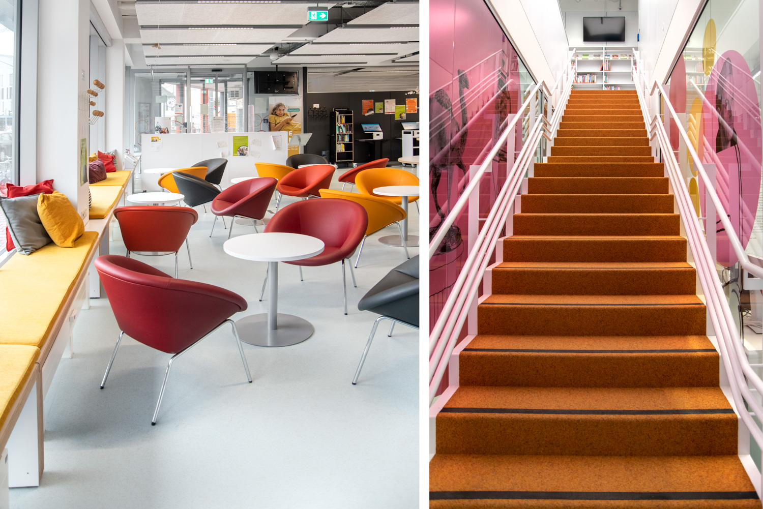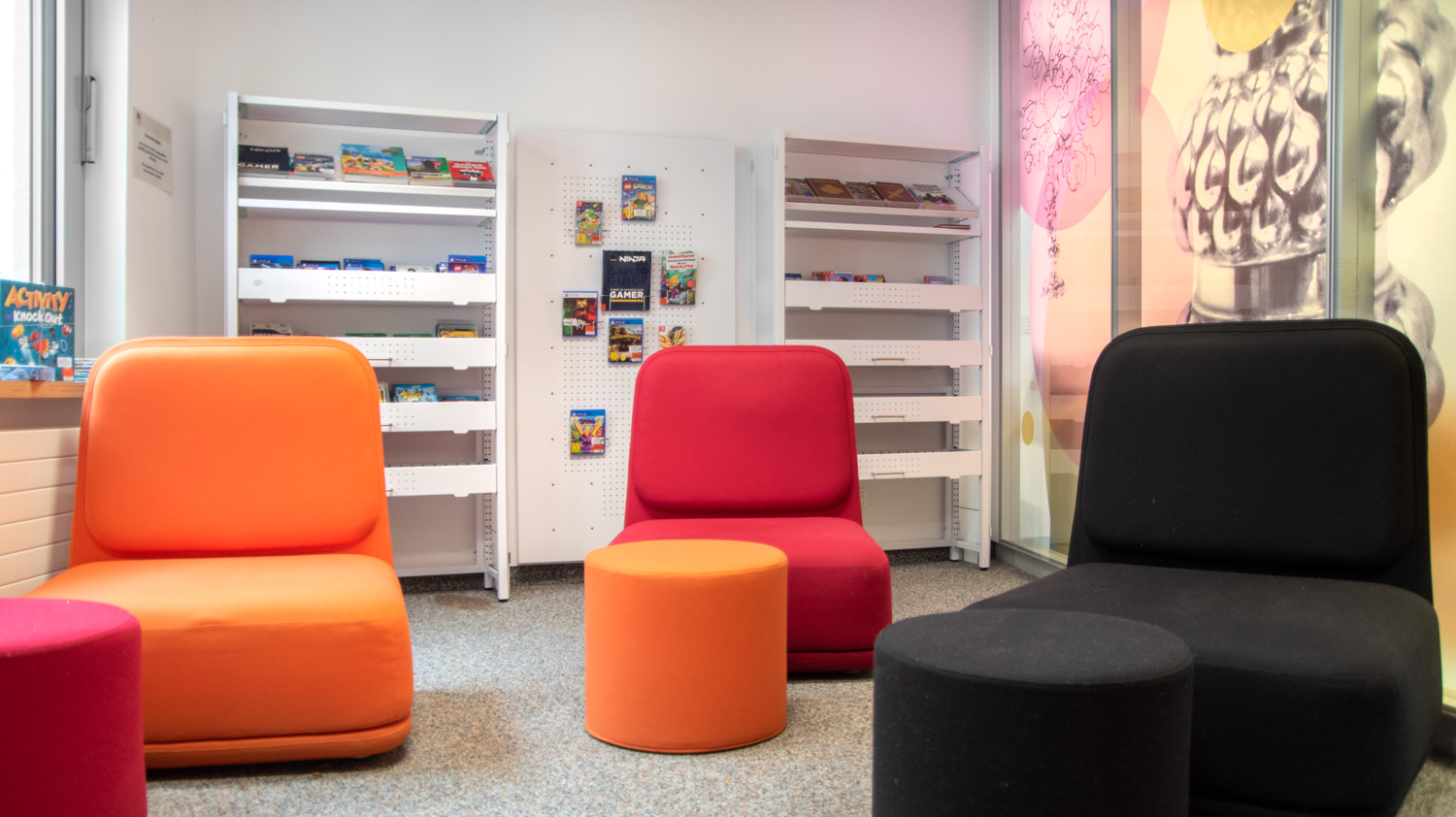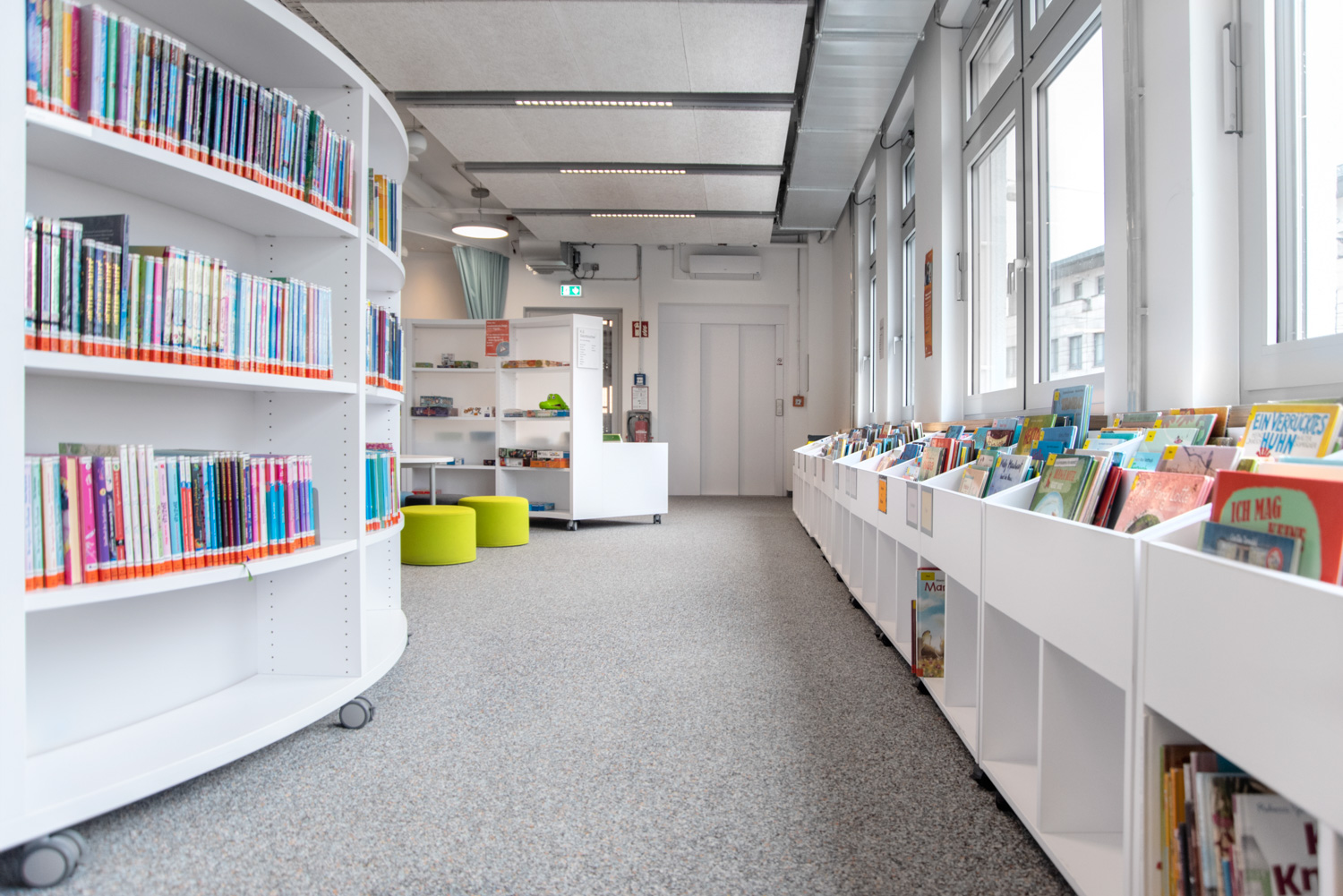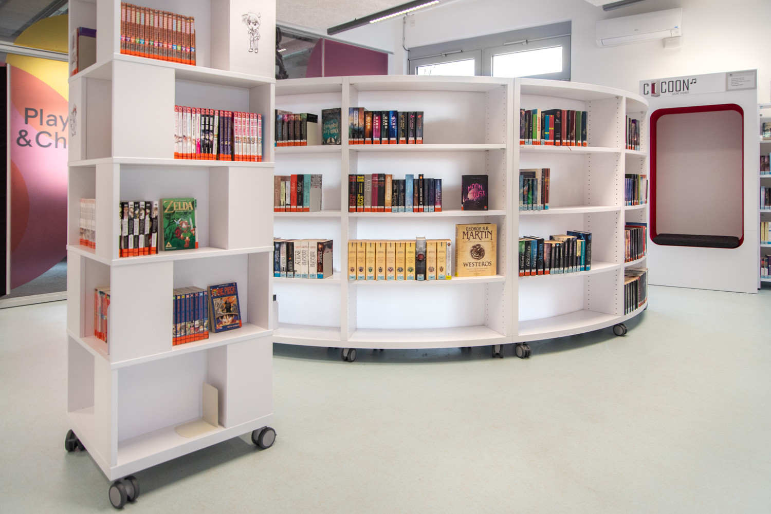 Die Bibliothek zieht alle Arten von Besuchern an, die hierherkommen, um ein Buch auszuleihen, eine Zeitung zu lesen, Spiele zu spielen oder nach anderen Medien zu suchen. Die Schulen haben außerhalb der regulären Öffnungszeiten Zugang zur Bibliothek, und die Kinder scheinen begeistert über alle Möglichkeiten zu sein, die die Bibliothek bietet.