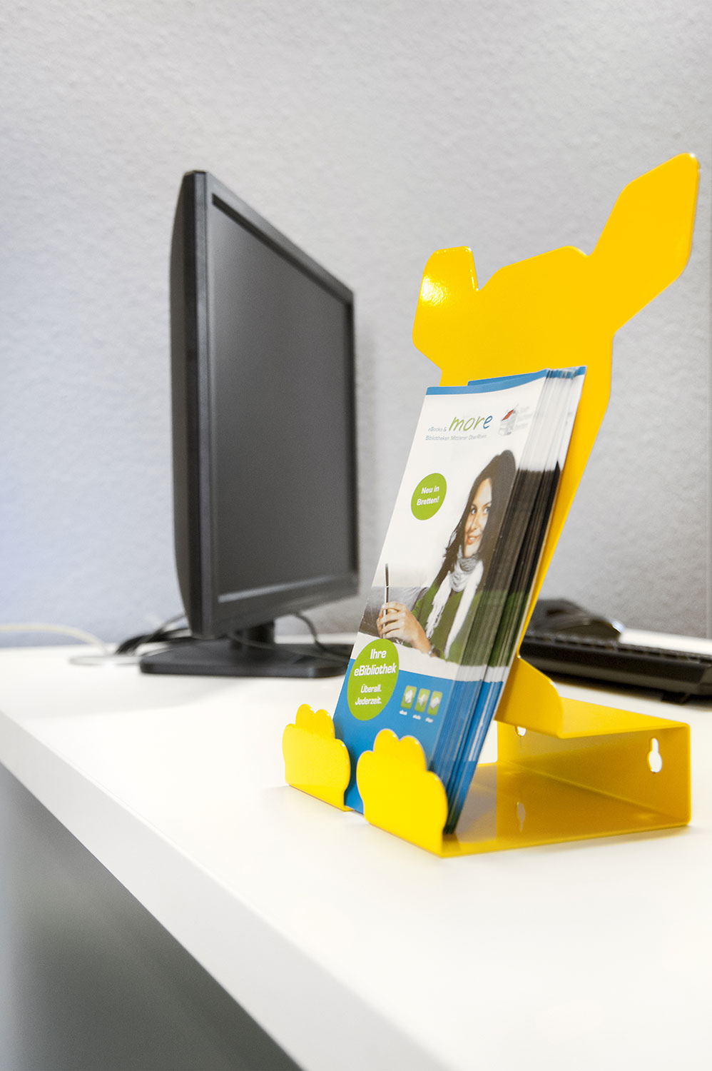 Die Theke Inform, der Displayturm Labyrinth und die Displayständer in Form von Wildtieren tragen zum neuen Erscheinungsbild der Bücherei bei.