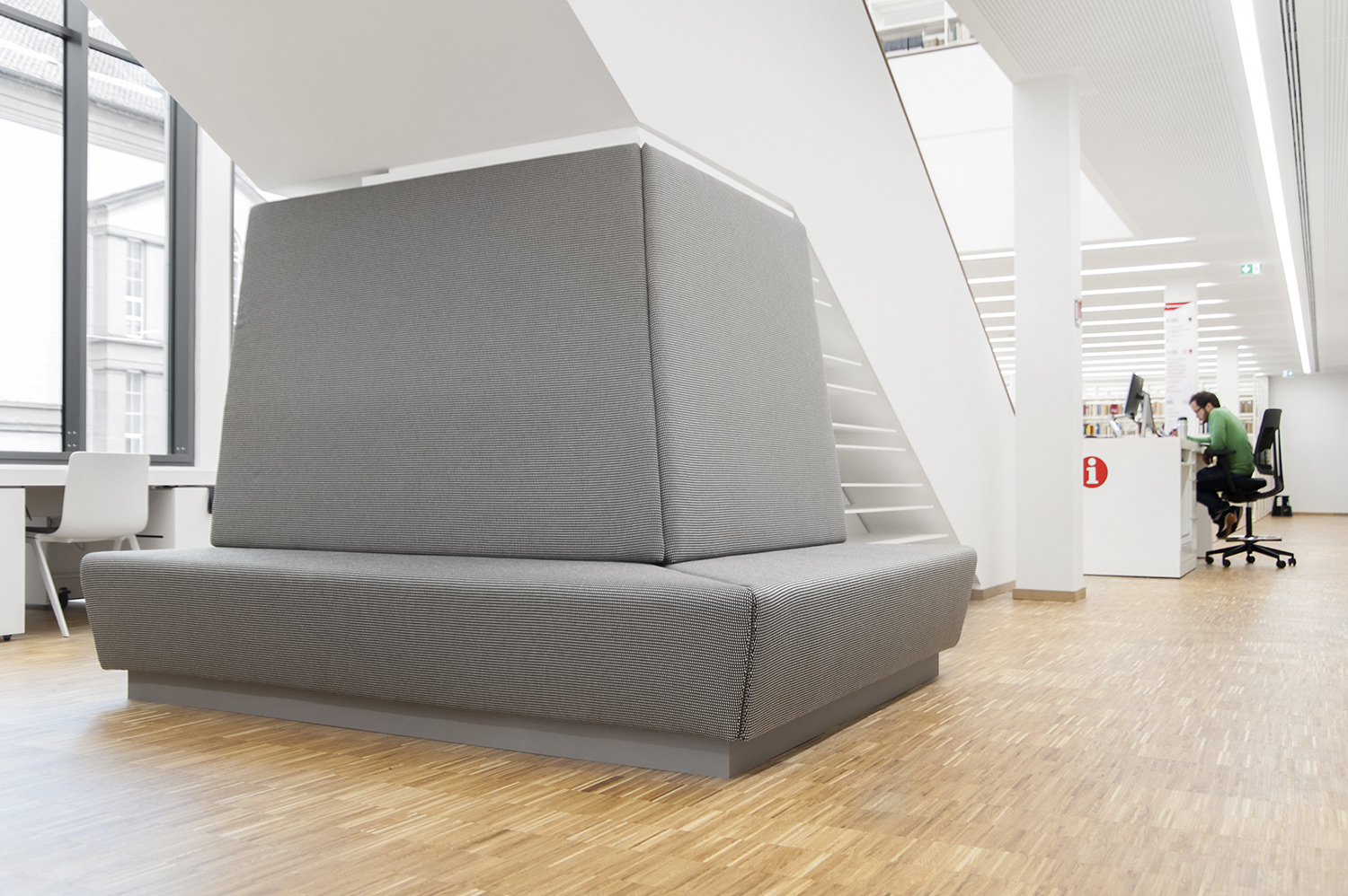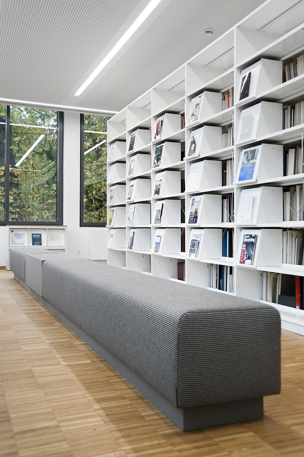 Der Entwurf für die Bibliothek und Sonderlösungen stammen von den UKW Innen-Architekten in Krefeld (www.ukw-innenarchitekten.de).