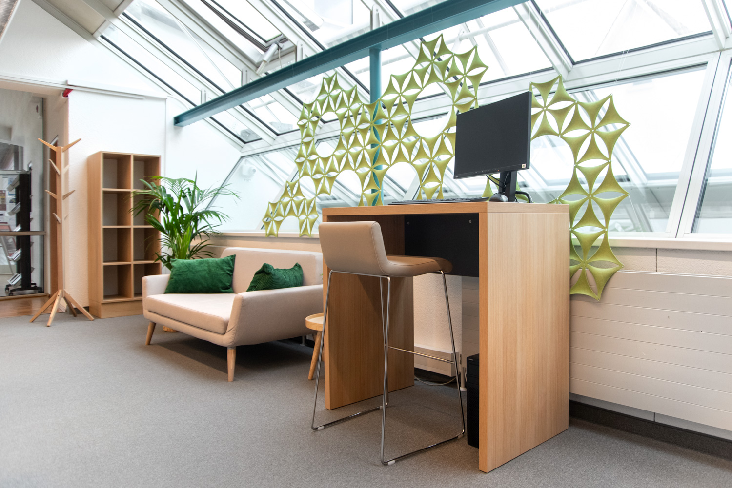 …wünschenswert aber herausfordernd. Wir haben zusammen mit dem Bibliotheksteam daran gearbeitet Lösungen genau dafür zu schaffen. Es gibt Plätze für Gemeinsamkeit und Plätze für Ruhe und konzentriertes arbeiten, lernen und auch relaxen.