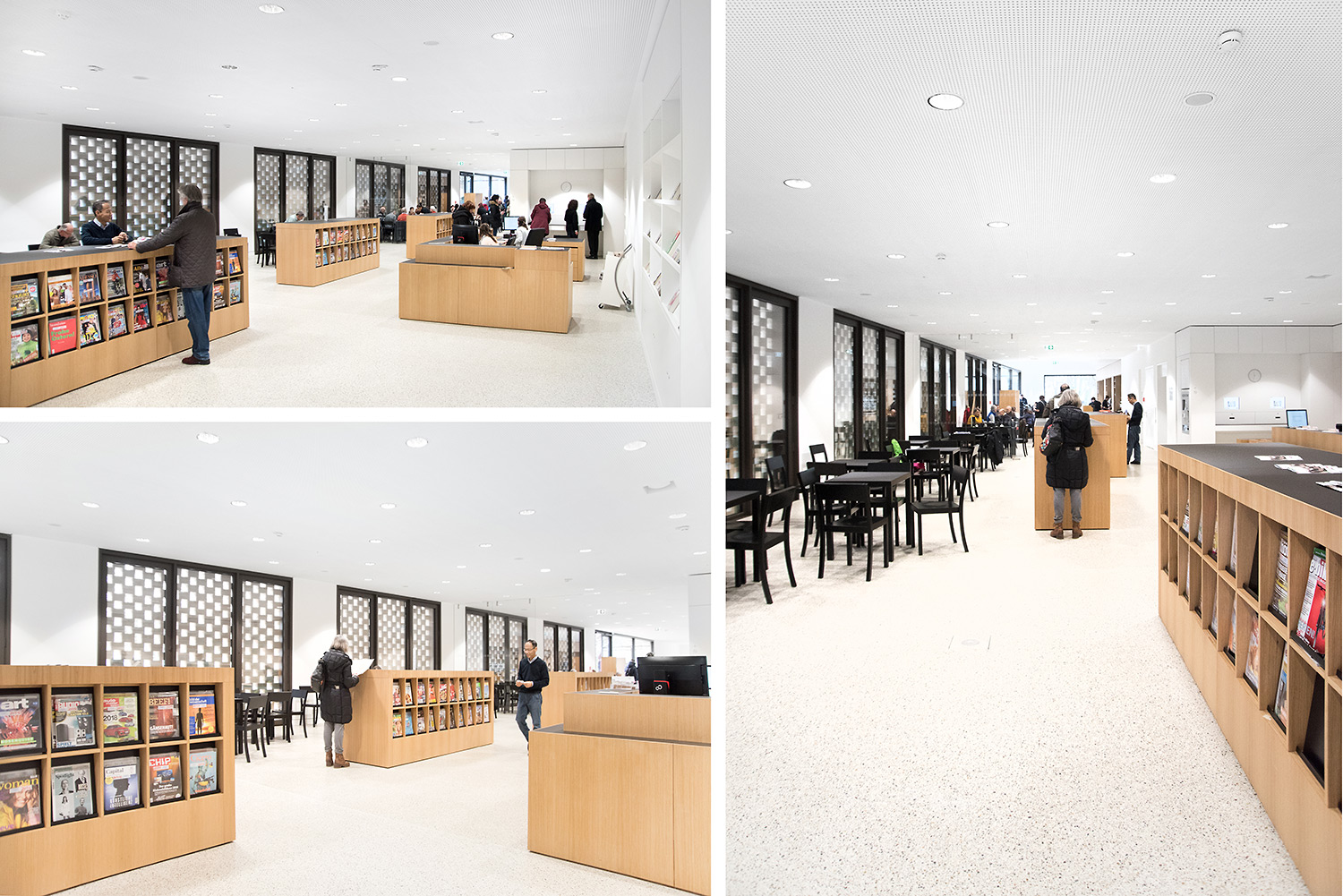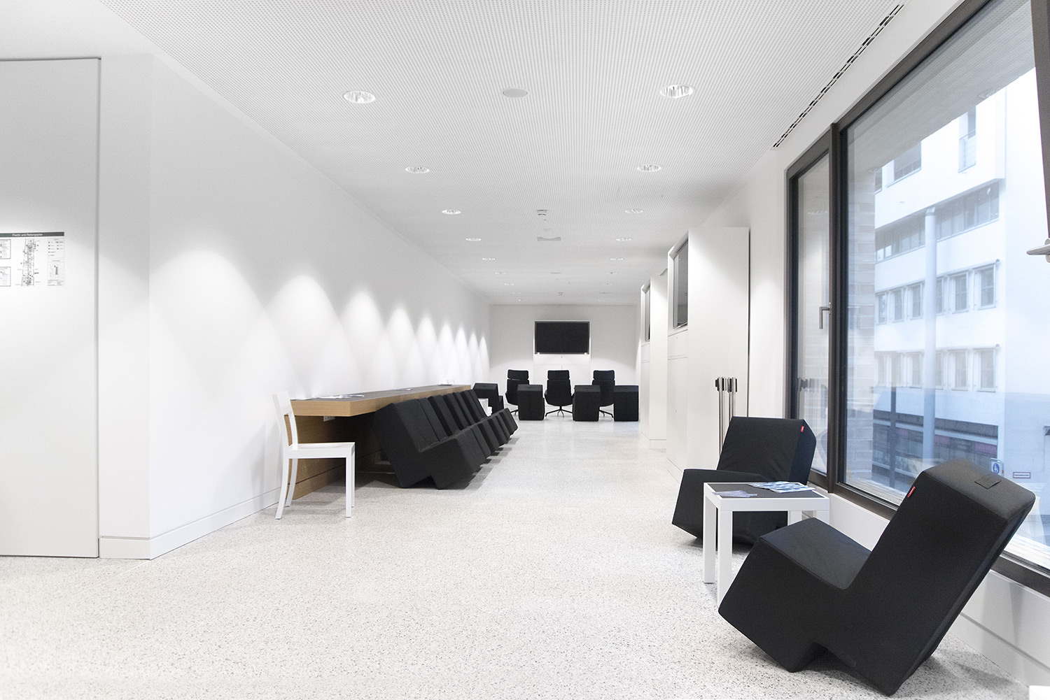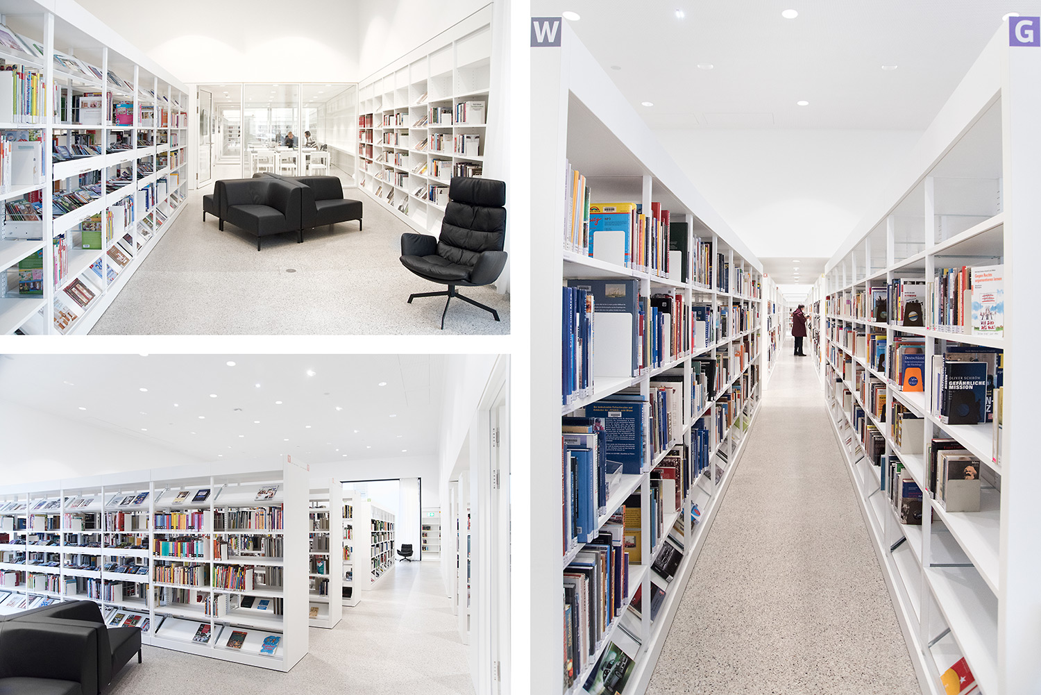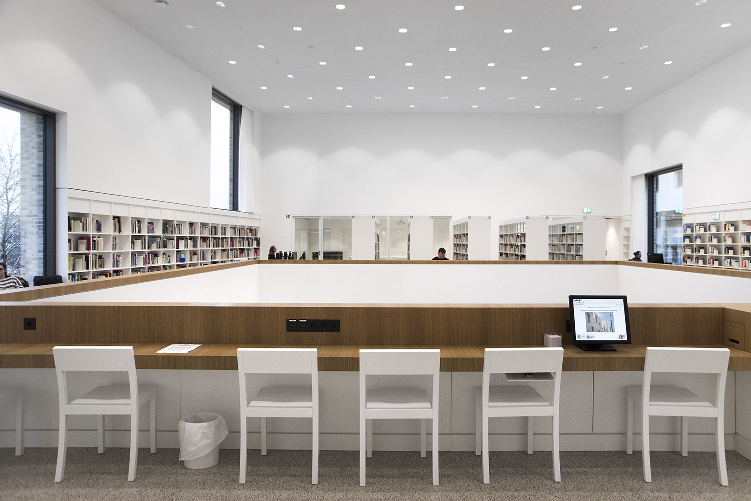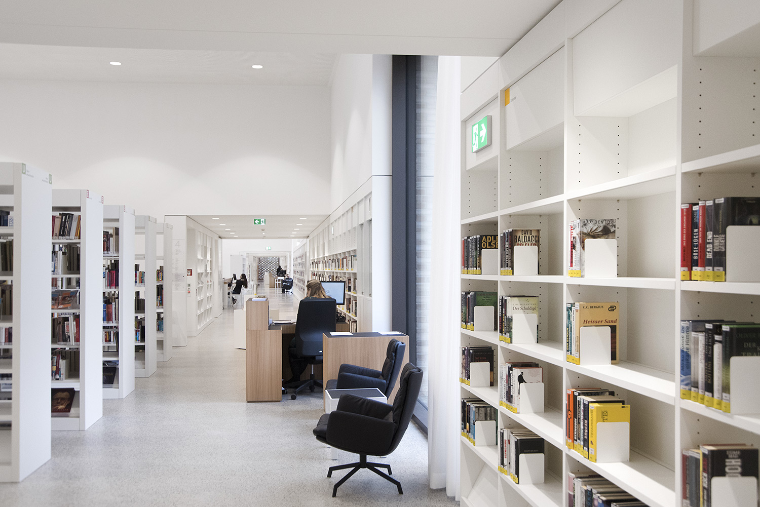Das Resultat überzeugt durch eine gelungene Symbiose aus hochwertiger Eleganz und Aufenthaltswert für die Nutzer. Der eindrucksvolle Eindruck den man bekommt, zieht sich wie eine Linie von der Gebäudefassade über den Eingangsbereich in die einzelnen Etagen. Trotzdem möchte man als Besucher die Bibliothek für sich „einnehmen“ und entdecken. Man möchte gerne seine Zeit hier verbringen.