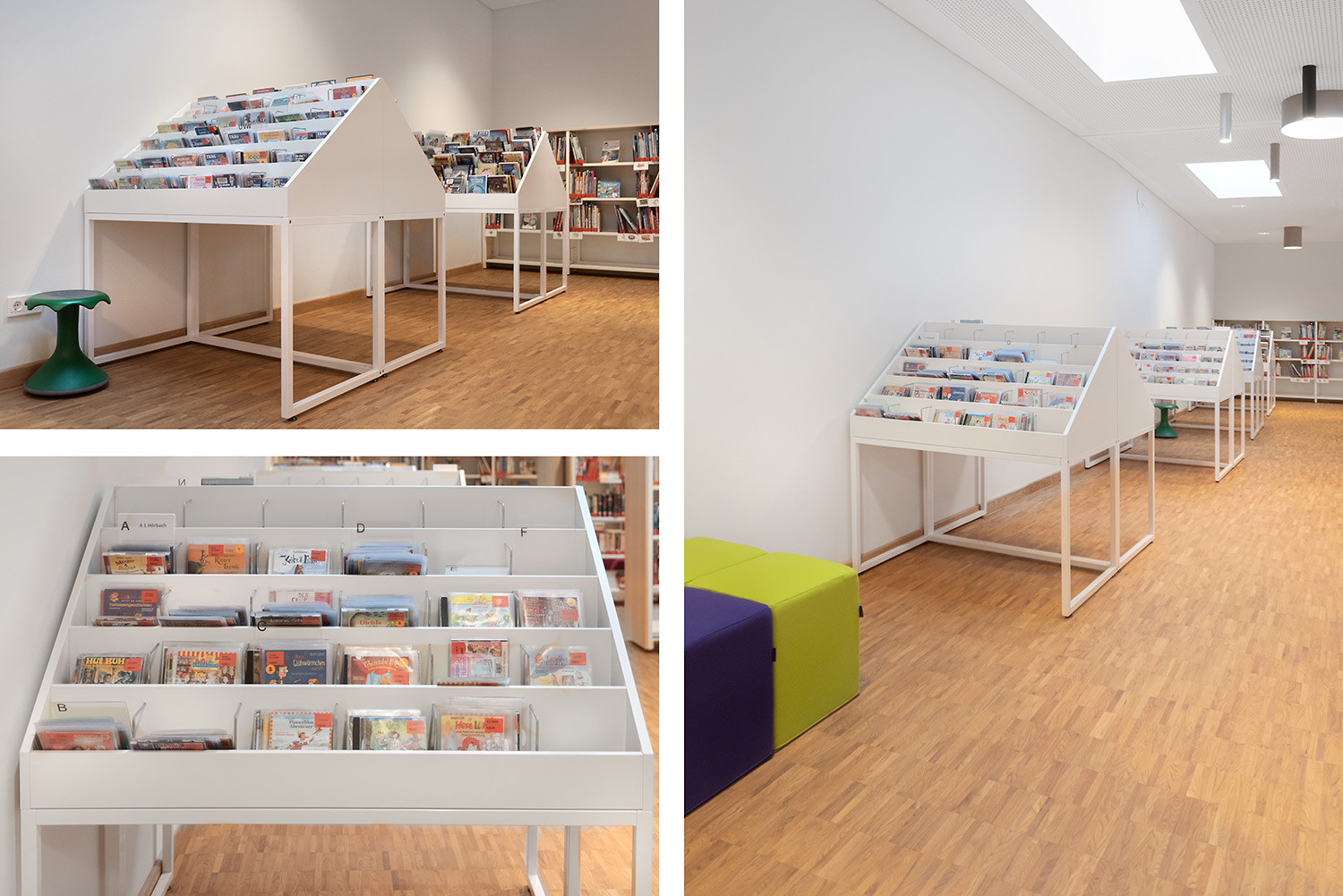 Das wirkt hochwertig und technisch im Detail, jedoch trotzdem einfach einladend und für alle Altersstufen geeignet. Ein gutes Beispiel ist hierfür unser Discorama Medienmöbel welches in allen Bereichen der Bibliothek zum Einsatz kommt, aber auch die gerundeten Inform Regale. Abgerundet wurde unter anderem mit Maria Medientrögen, speziellen Wandrahmen für unsere bewährte Querbox und den beliebten Softline Aiko Sesseln. Wir wünschen dem gesamten Team der Bibliothek viel Spaß und jede Menge Besucher.