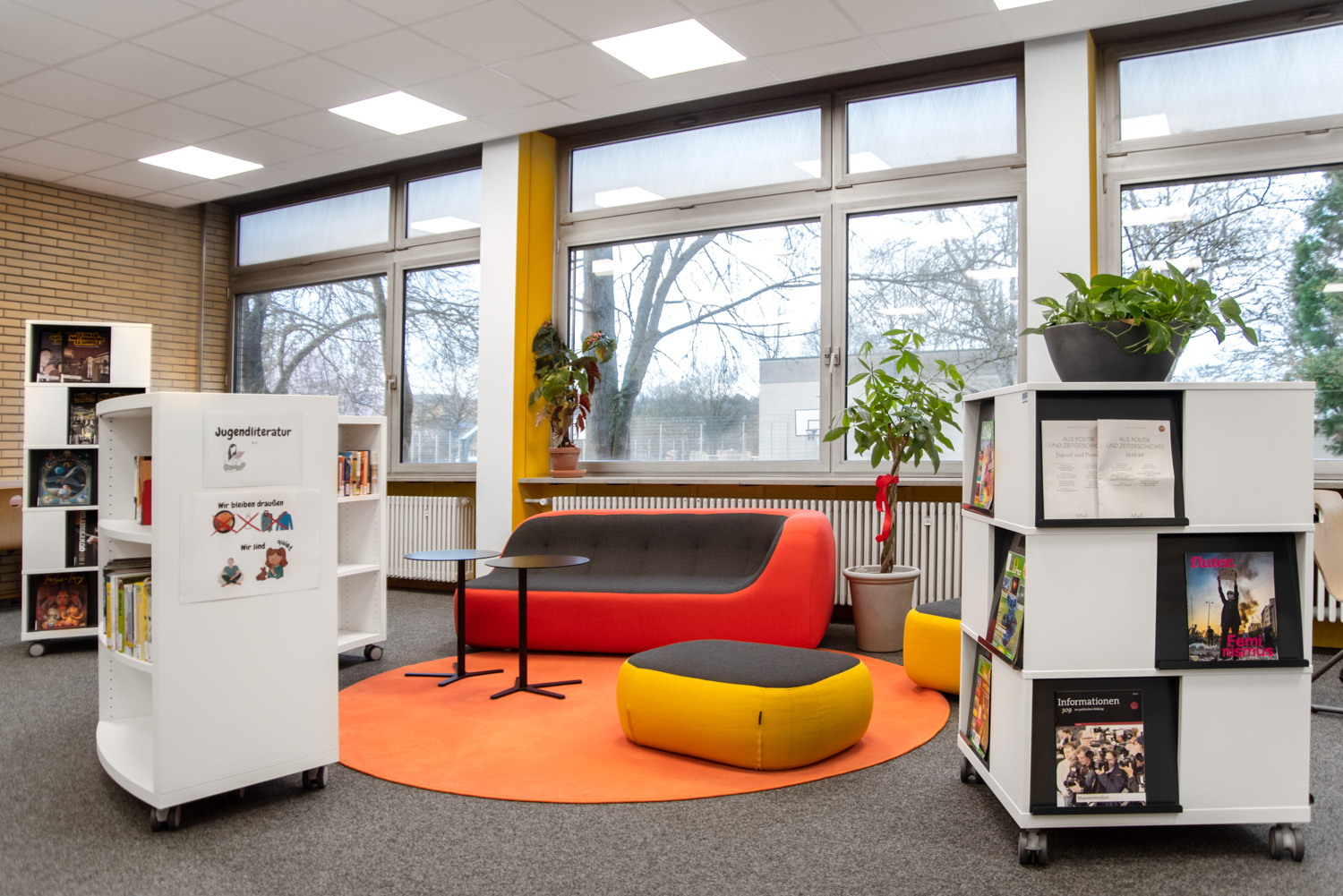 Bei Schulz Speyer haben wir uns dieser Herausforderung angenommen und ein Umfeld geschaffen, in dem sich die Schüler beim Lesen der Zeitung treffen, arbeiten oder entspannen können.