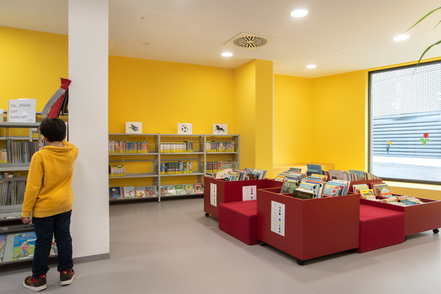 Durch die Wiederverwendung bestehender Regale hat die Bibliothek Vorteile erzielt, die in Kombination mit neuen Bibliotheksmöbeln einen Mehrwert geschaffen haben, der jeden Tag zu einem unterhaltsamen Erlebnis für alle Beteiligten macht.