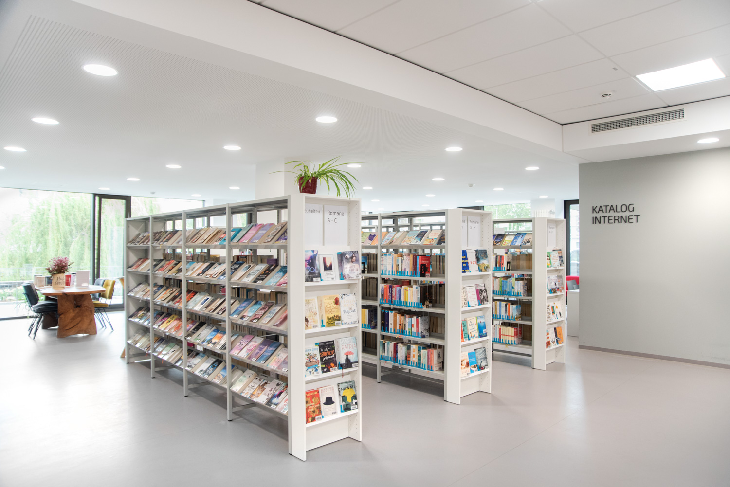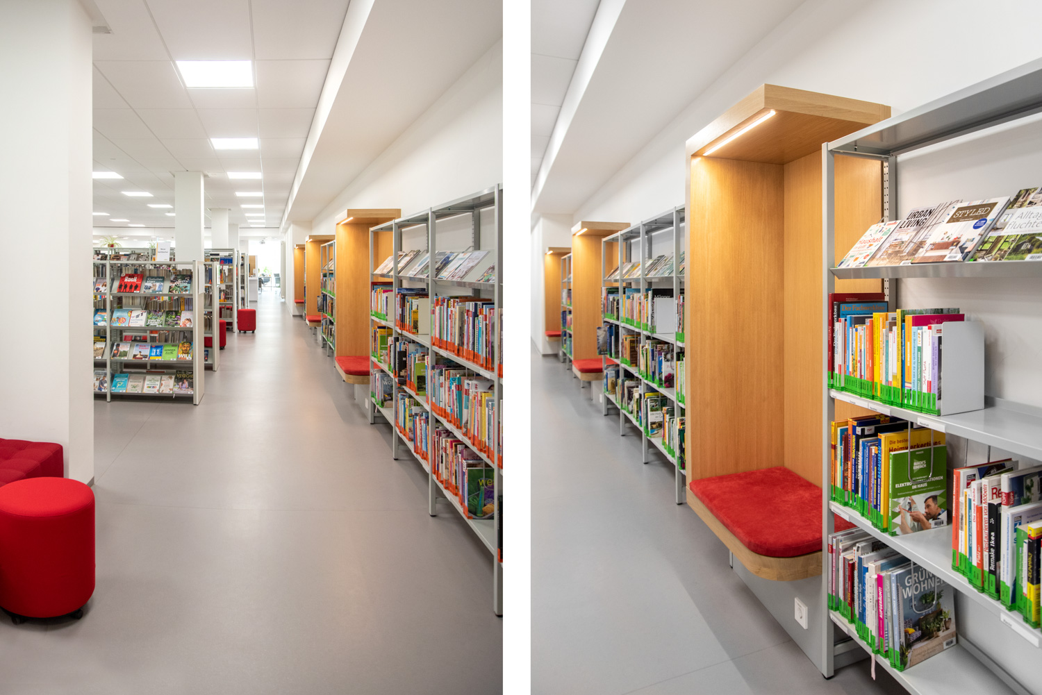 Vorhandene und neue Bibliotheksmöbel in schöner Kombination