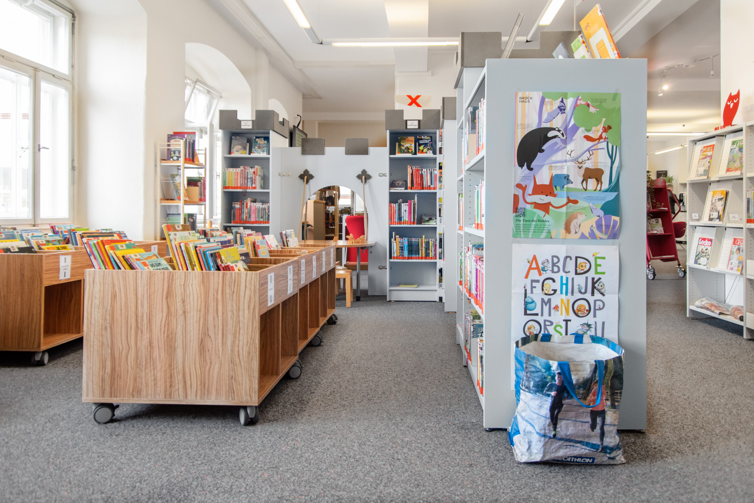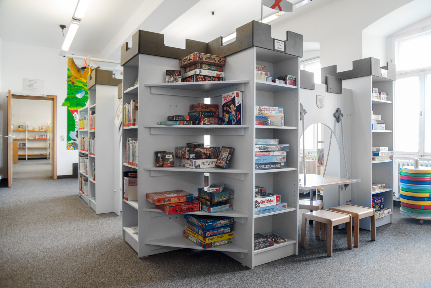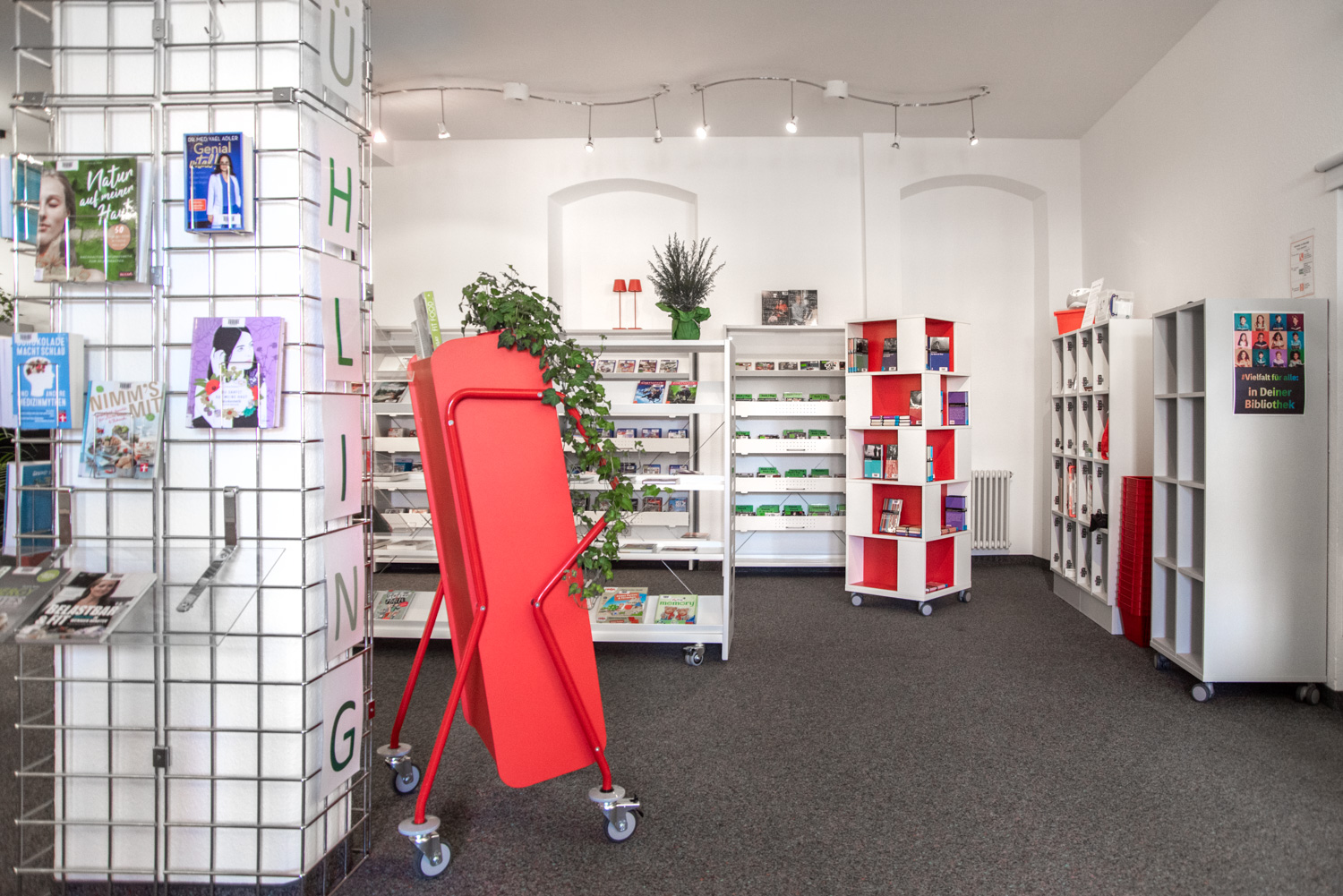 Die benötigten Medien werden clever präsentiert und die Möblierung gibt der Bibliothek genügend Flexibilität um allen Anforderungen gerecht zu werden.