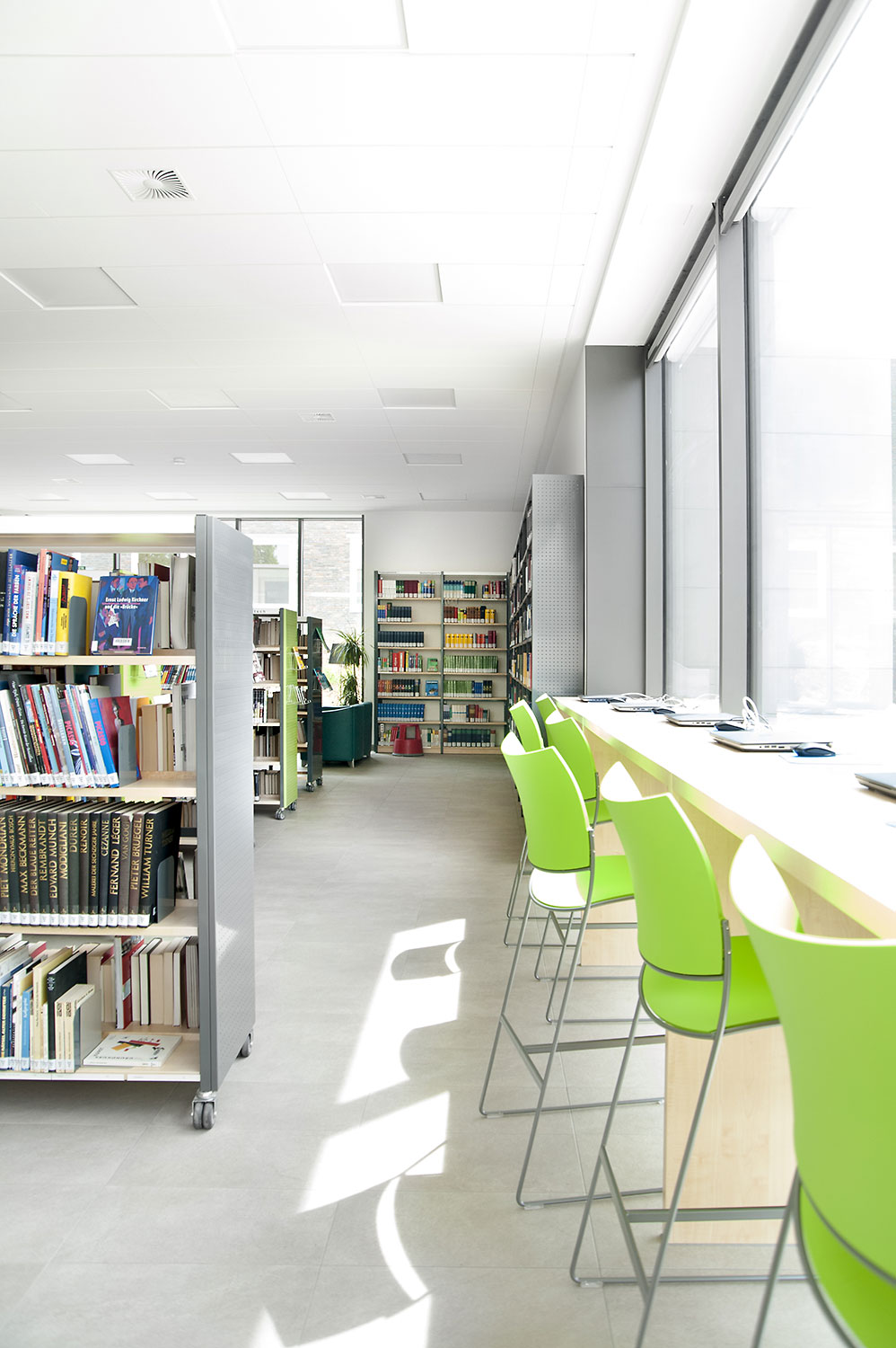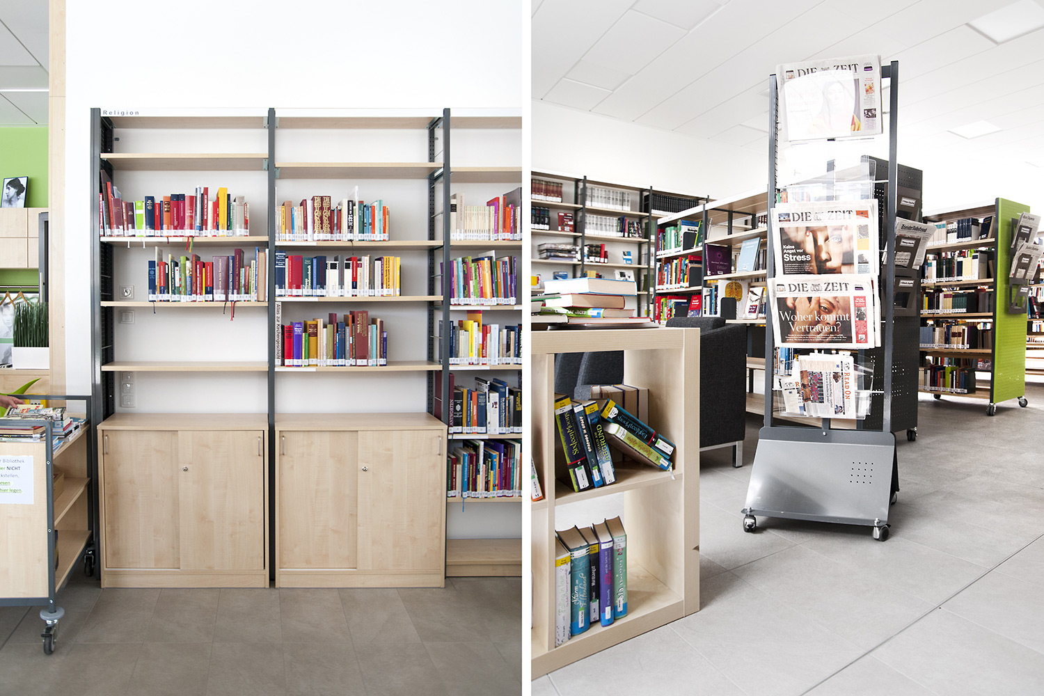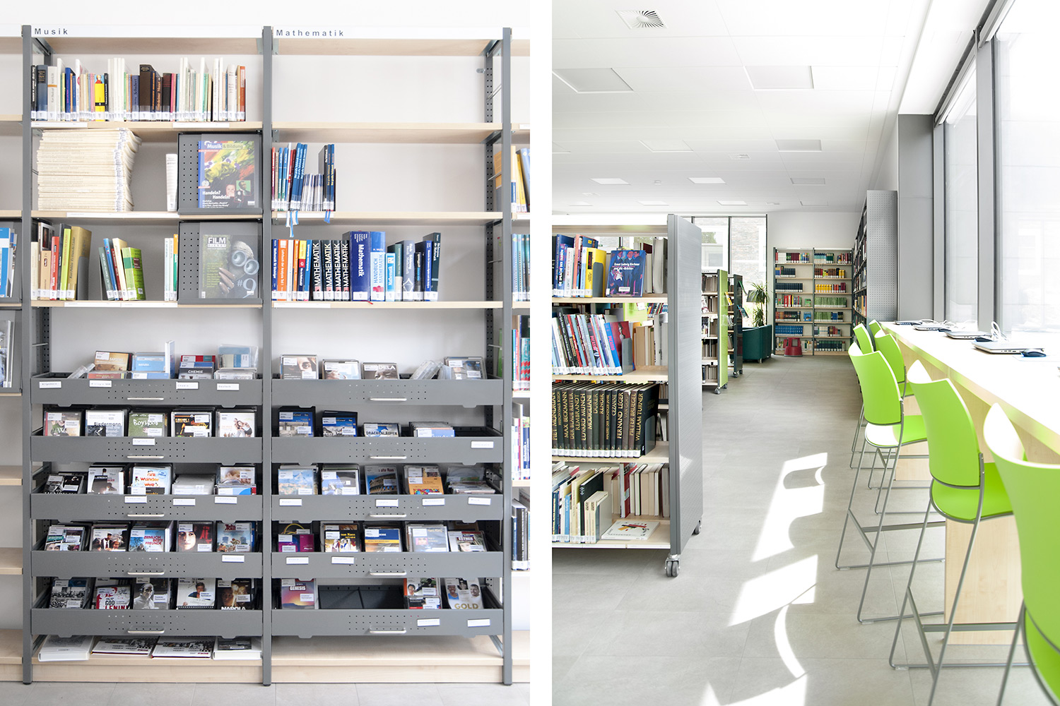 Dieses ambitionierte Projekt ist ein gutes Beispiel dafür was man mit Engagement und Begeisterung aller Beteiligten erreichen kann. Es wurde ein Raum geschaffen, der die unterschiedlichen Ansprüche an eine Schulbibliothek geschickt erfüllt und gleichzeitig einen hohen Aufenthaltswert schafft – für alle Altersstufen. Wir durften hier mit unseren Produkten – unter anderem mit unserem Regalsystem Uniflex – sowie im gestalterischem Bereich teilhaben. Besonderen Wert wurde hierbei auf Flexibilität und modernes Design gelegt.