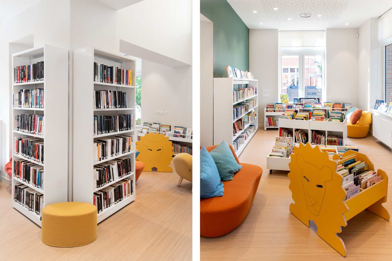 Die Bibliothek von Laventie befindet sich im Erdgeschoss des Castel de l'Allœu, in der Nähe des Stadtzentrums.
