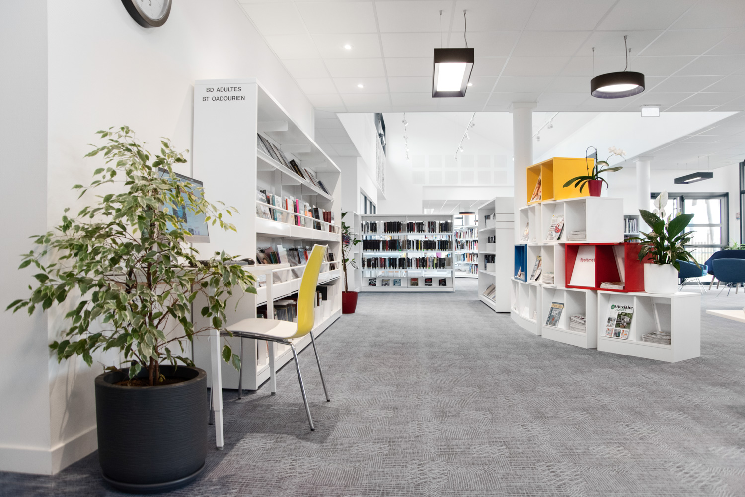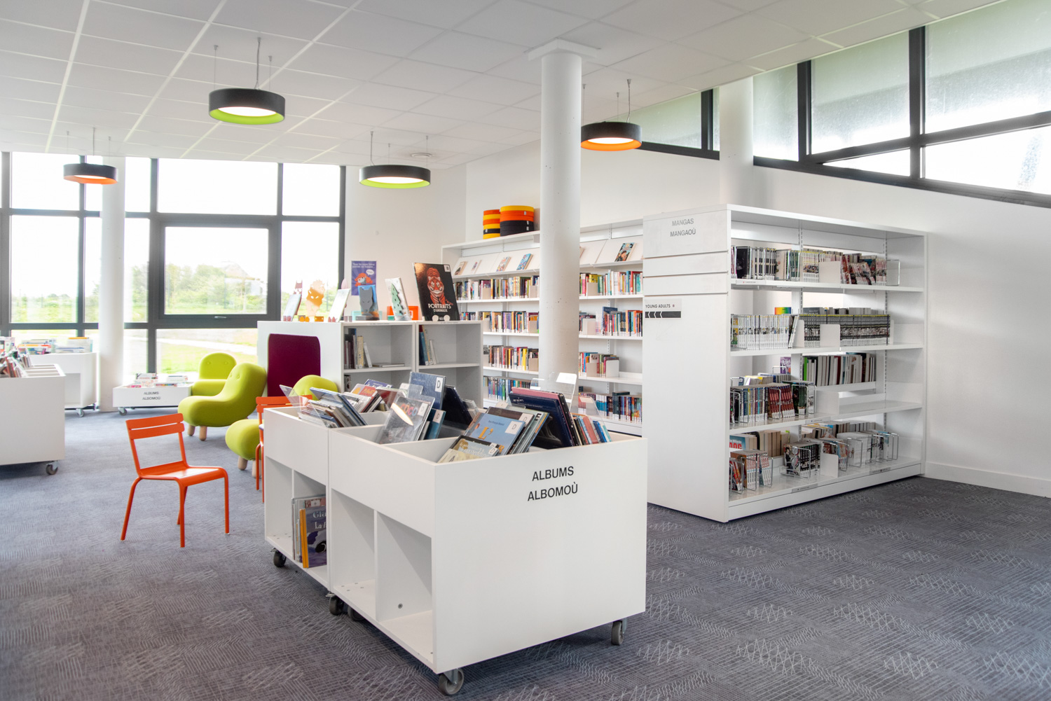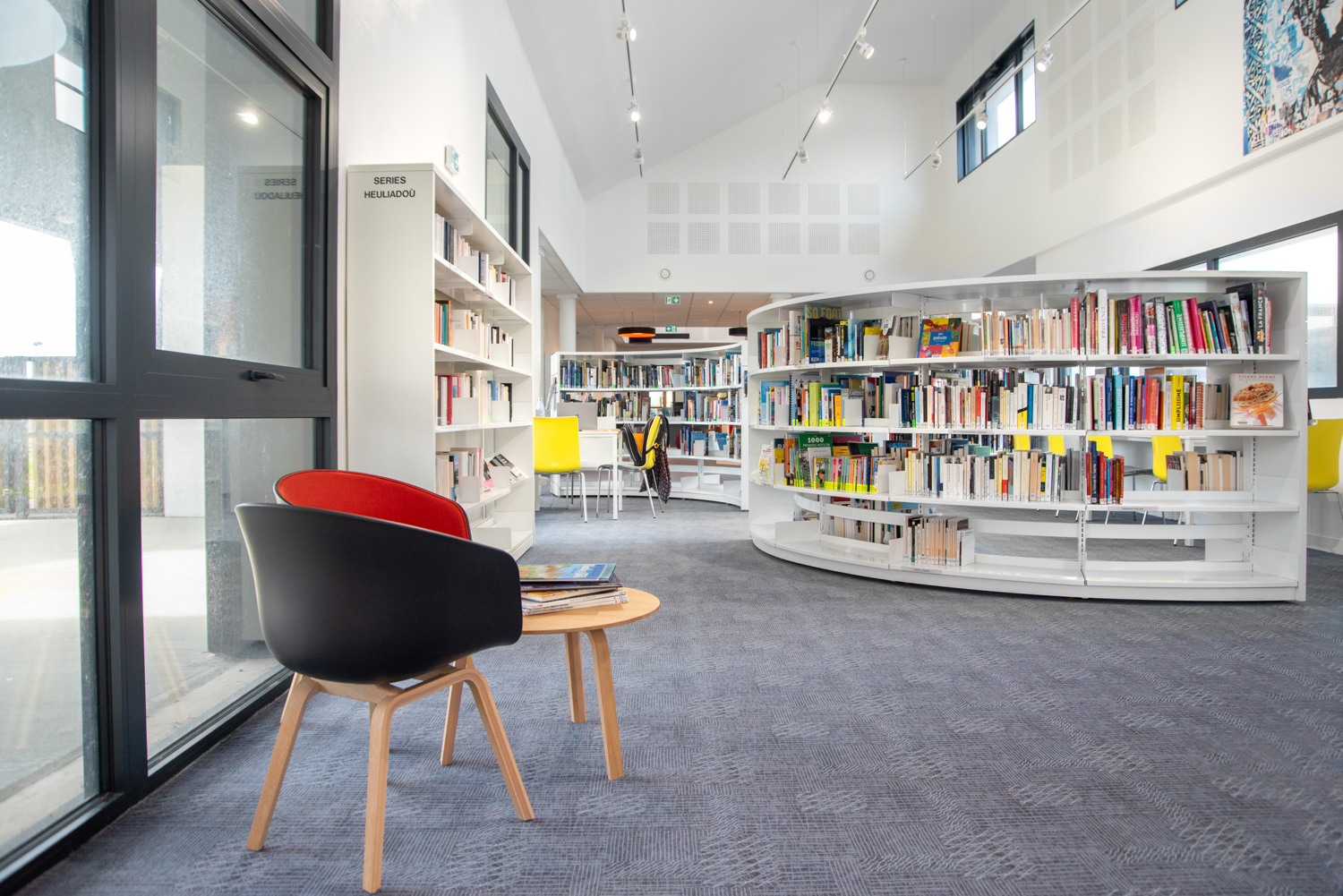 Die Mediathek René Quillivic in Plouhinec, die im Dezember 2020 eröffnet wurde, verfügt über fast 10.000 Bücher und eine originelle Einrichtung, wie zum Beispiel Cocoon für Kinder oder runde Regale für Erwachsene.