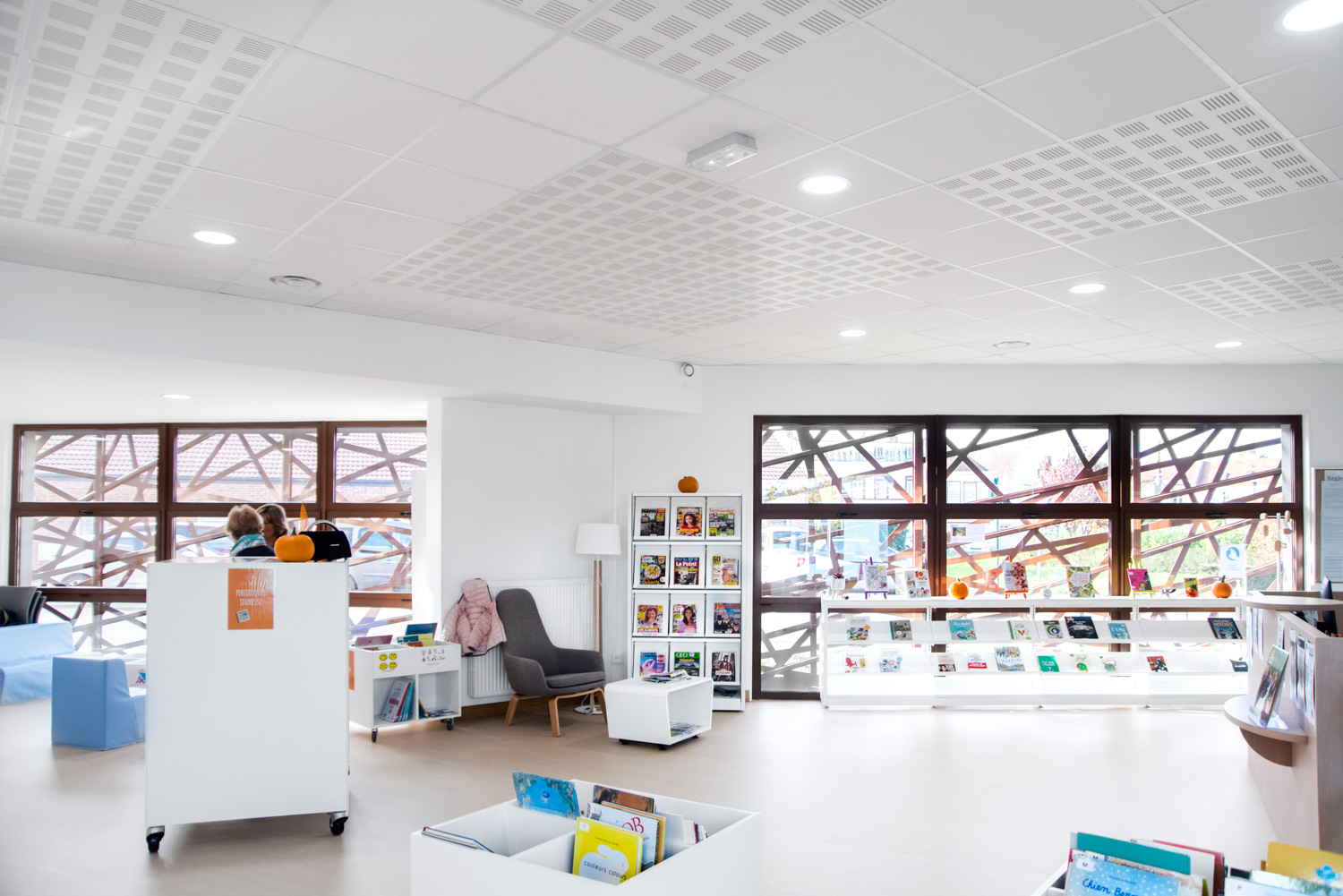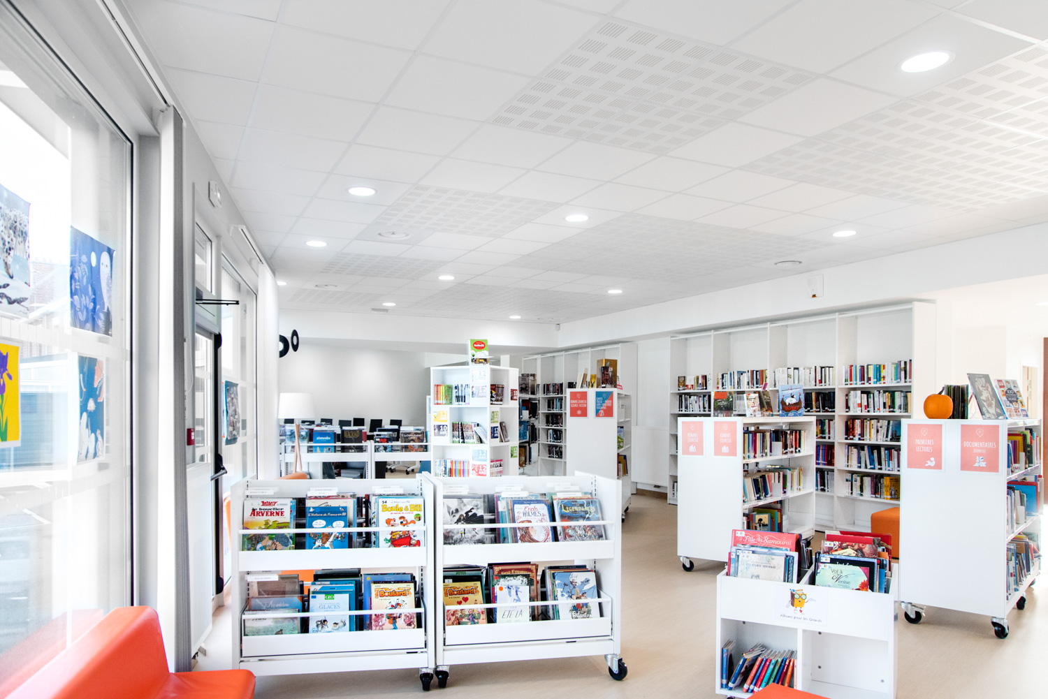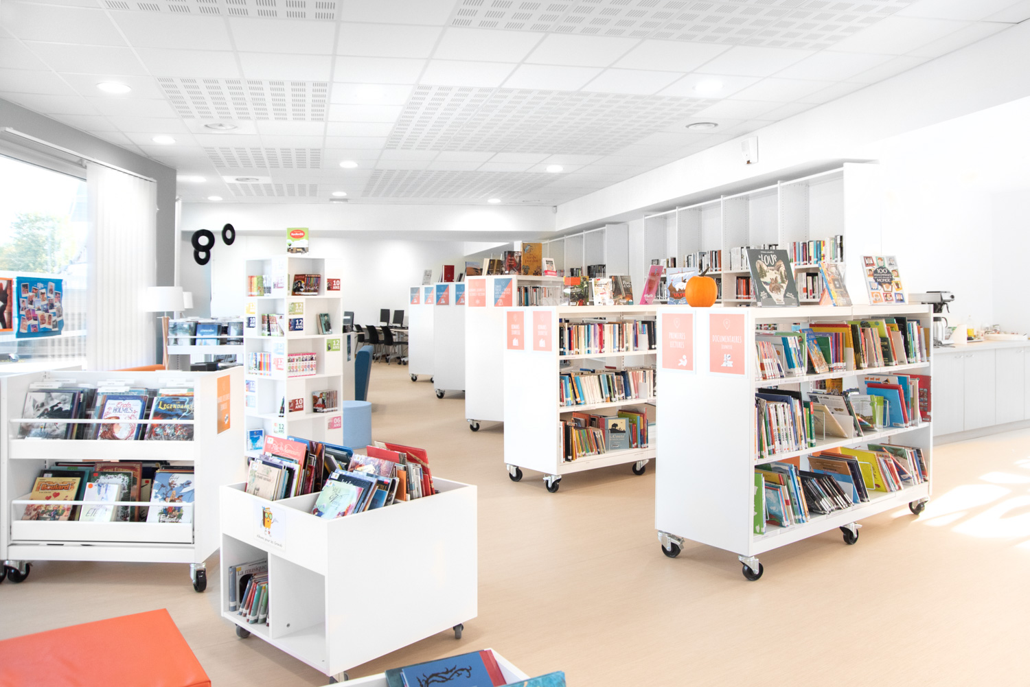 Die Bibliothek arbeitete mit Projektmanagern und Innenarchitekten von BC Intérieur und UGAP für die Auswahl und das Layout der Bibliotheksmöbel zusammen.