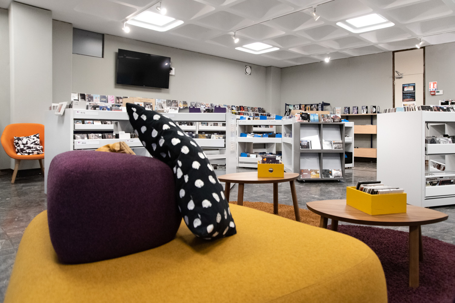 Wir haben auch daran gearbeitet, die allgemeine Sichtbarkeit innerhalb der Bibliothek zu verbessern, indem wir die Höhen der Regalsysteme reduziert und gebogene Regalsysteme verwendet haben.