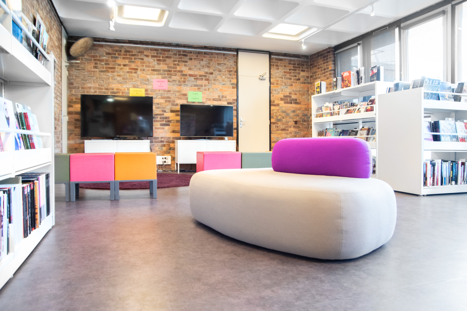 Schließlich haben mehrere kleinere Projekte rund um die Bibliothek es ermöglicht, neue Praktiken für mehr Autonomie und eine bessere Servicequalität zu entwickeln. Dazu gehören der Bau eines Arbeitsraumes, die Gestaltung der Terrasse und die Integration von Selbstbedienungsautomaten.