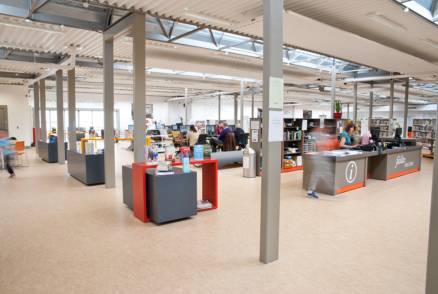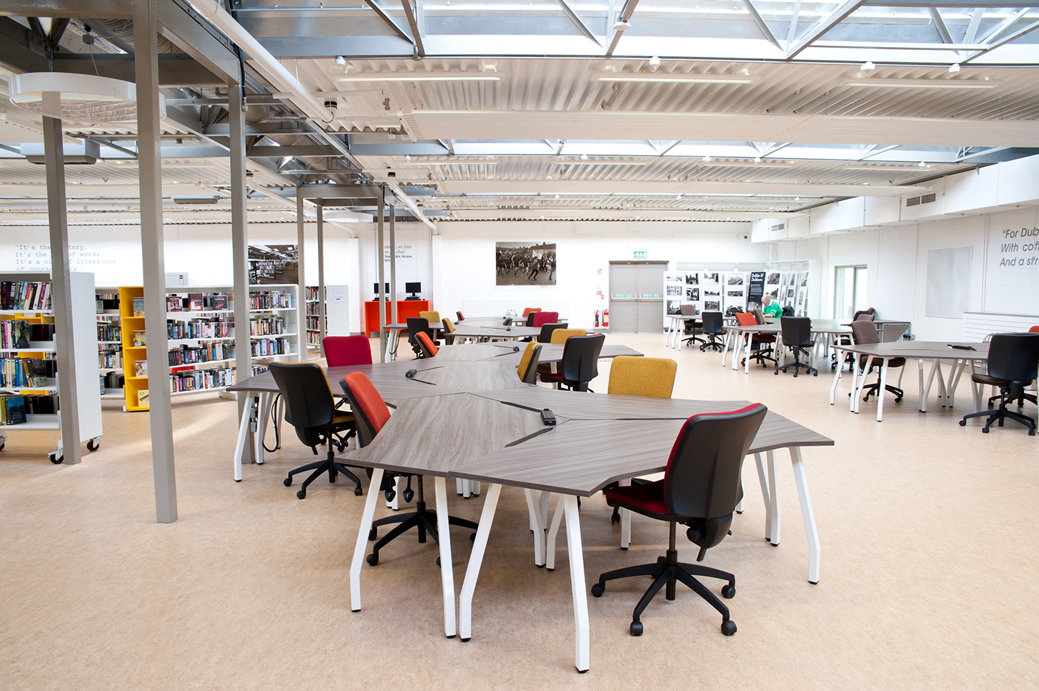 Die Gestaltungsherausforderung bei der Renovierung bestand darin, praktische und kleinere intime Räume innerhalb der gewaltigen Ausdehnung der Bibliothek zu schaffen. Interne Merkmale wurden gestaltet, um einen Ausgleich zwischen durchdachter und beabsichtigter Einteilung innerhalb des Gebäudes zu schaffen und eine einfache Orientierung und Wegfindung durch das Gebäude zu ermöglichen, ohne Räume auszugrenzen.