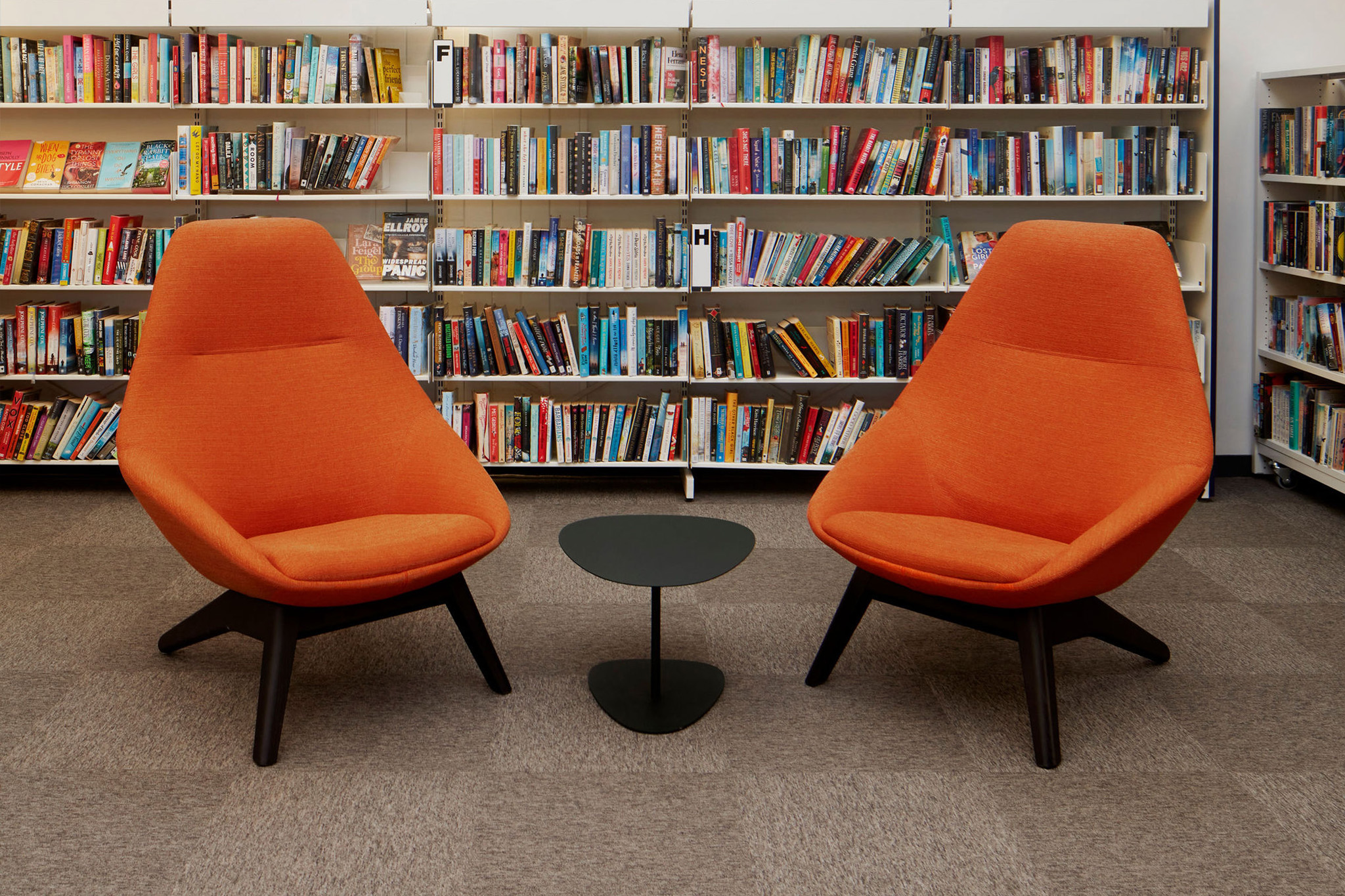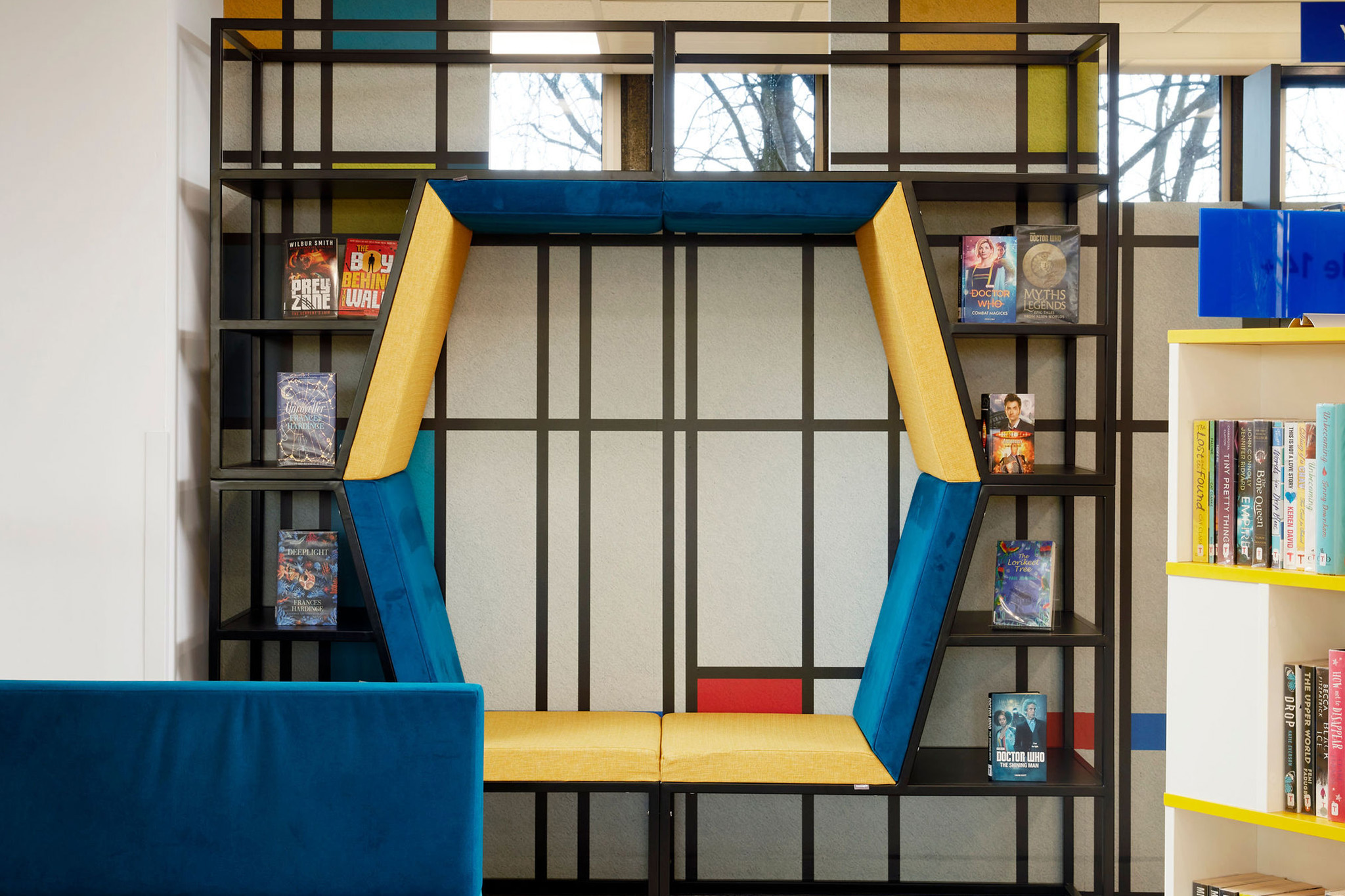Gleichzeitig wurde darauf geachtet, dass sich auch Jugendliche willkommen fühlen. Jugendliche sollten die Möglichkeit haben, sich auf bequemen Sofas zu entspannen oder ungestört zu lernen. Wir haben eine Vielzahl von Lern- und Sitzbereichen geschaffen, in denen Jugendliche allein oder in Gruppen lernen können.