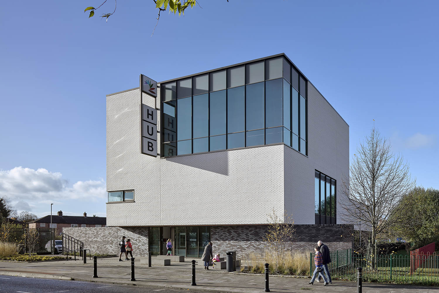 Die Aufgabe bestand darin, ein Gebäude zu schaffen, das sich für junge Menschen und Familien geräumig, offen und einladend anfühlt. Gleichzeitig war beabsichtigt, demenzfreundliche Designprinzipien zu integrieren, um sicherzustellen, dass Bewsey & Dallam Gemeindezentrum eine Einrichtung ist, die für alle inklusiv ist.