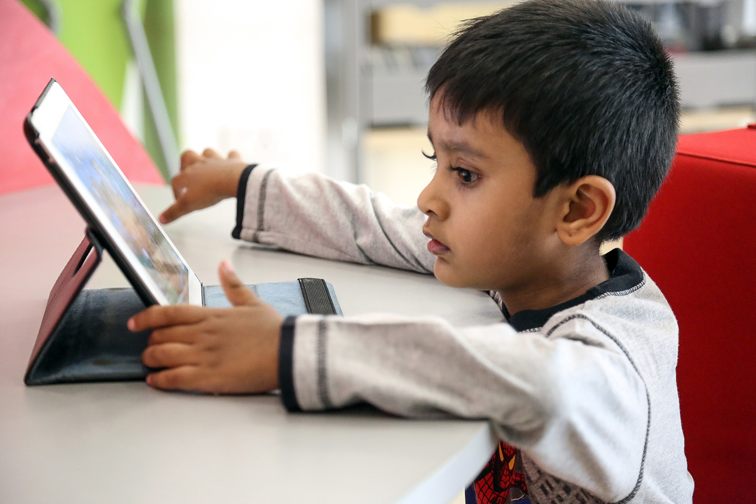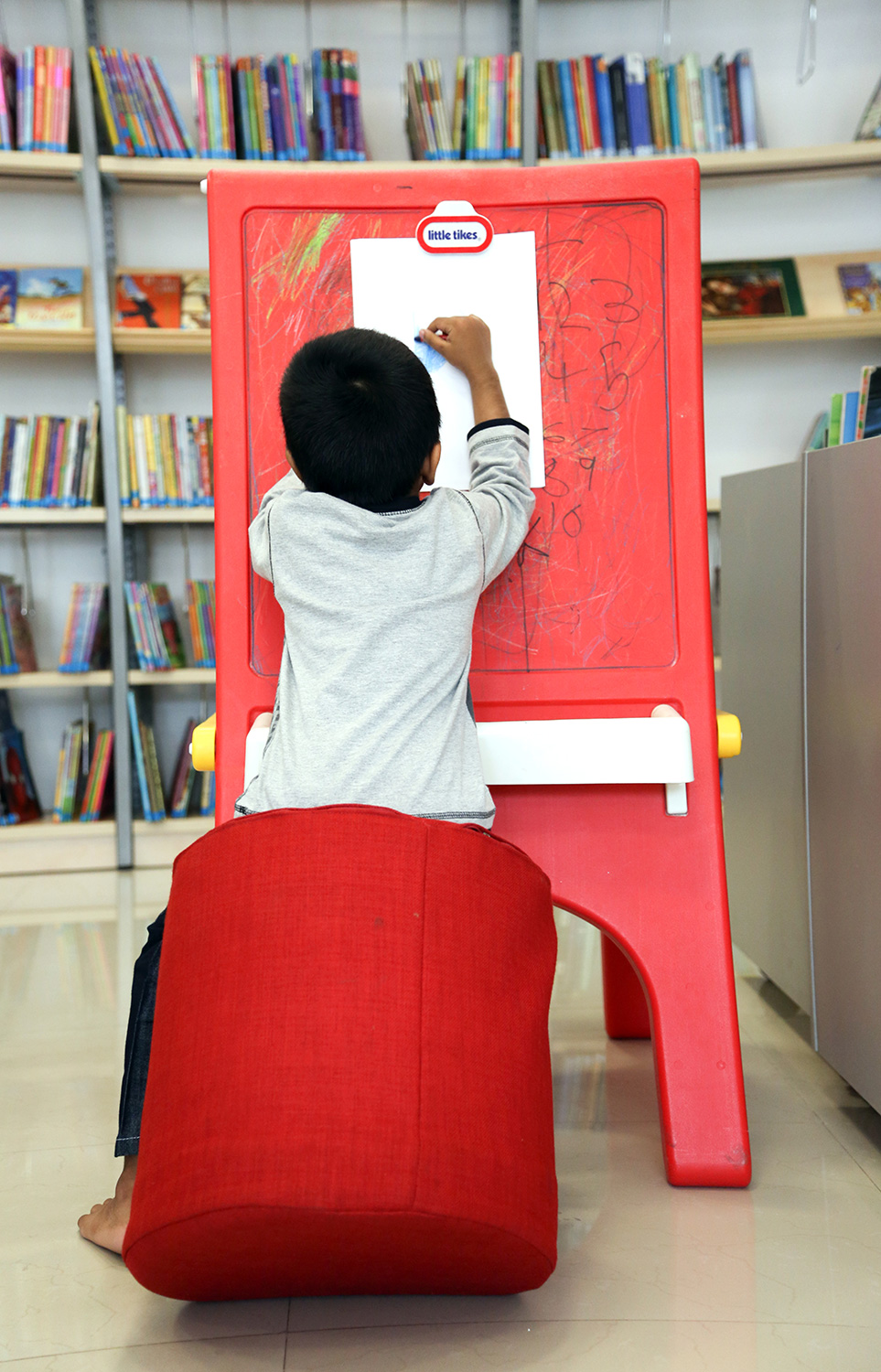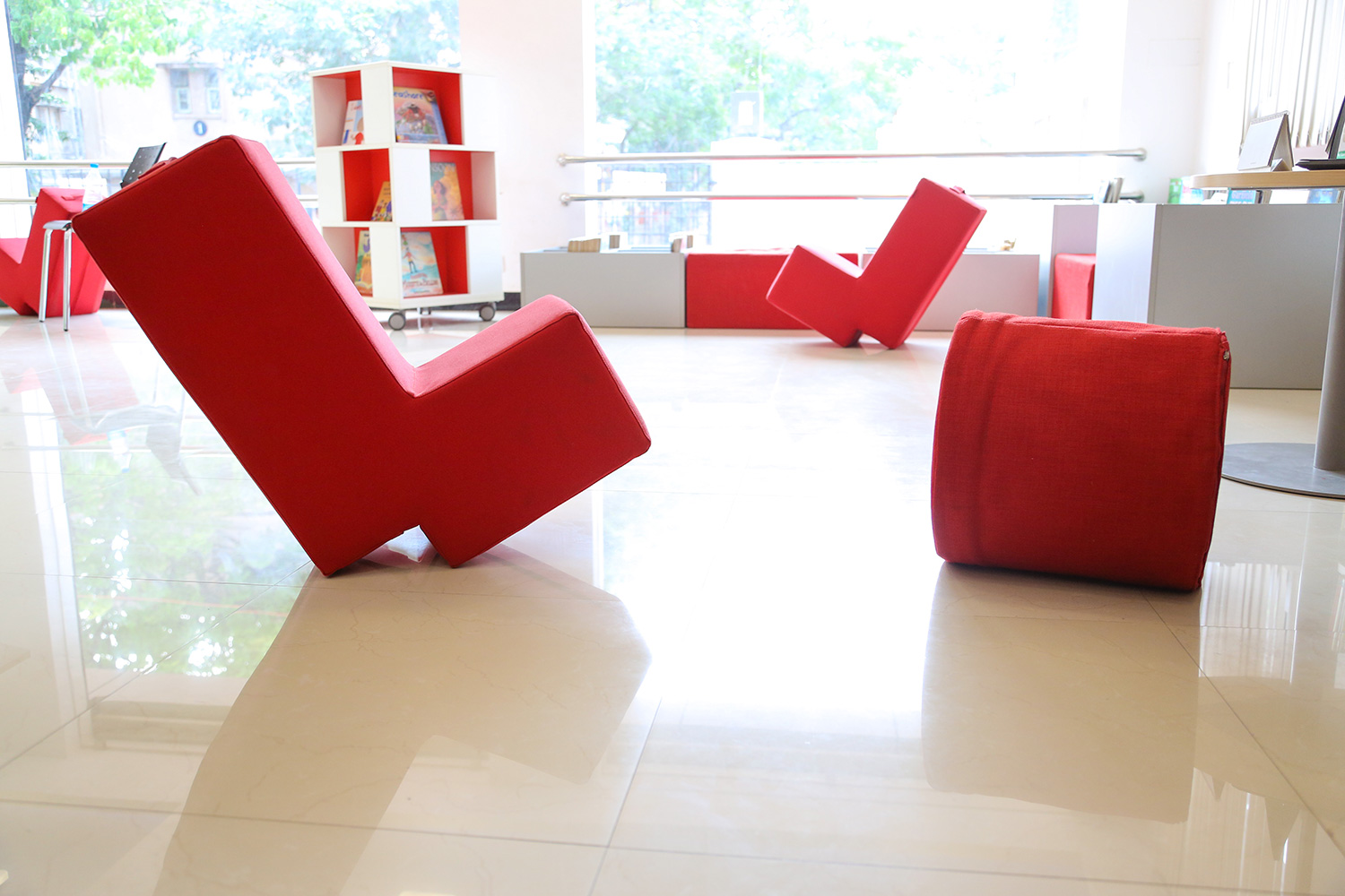 Am wichtigsten ist für die Bibliothek die Förderung des Lesevermögens und die Innengestaltung ist so angelegt, dass sie die Interaktion zwischen Kindern, Büchern und dem erfahrenen Personal unterstützt und verbessert. Mit spannenden Einrichtungsgegenständen wie der Leserakete, dem Leseflugzeug und verschiedenen Bilderbuchkisten ist die Gestaltung klar auf ihre Zielgruppe ausgerichtet. Regale, Computerstationen, Stühle und Tische runden die Einrichtung nahtlos ab.