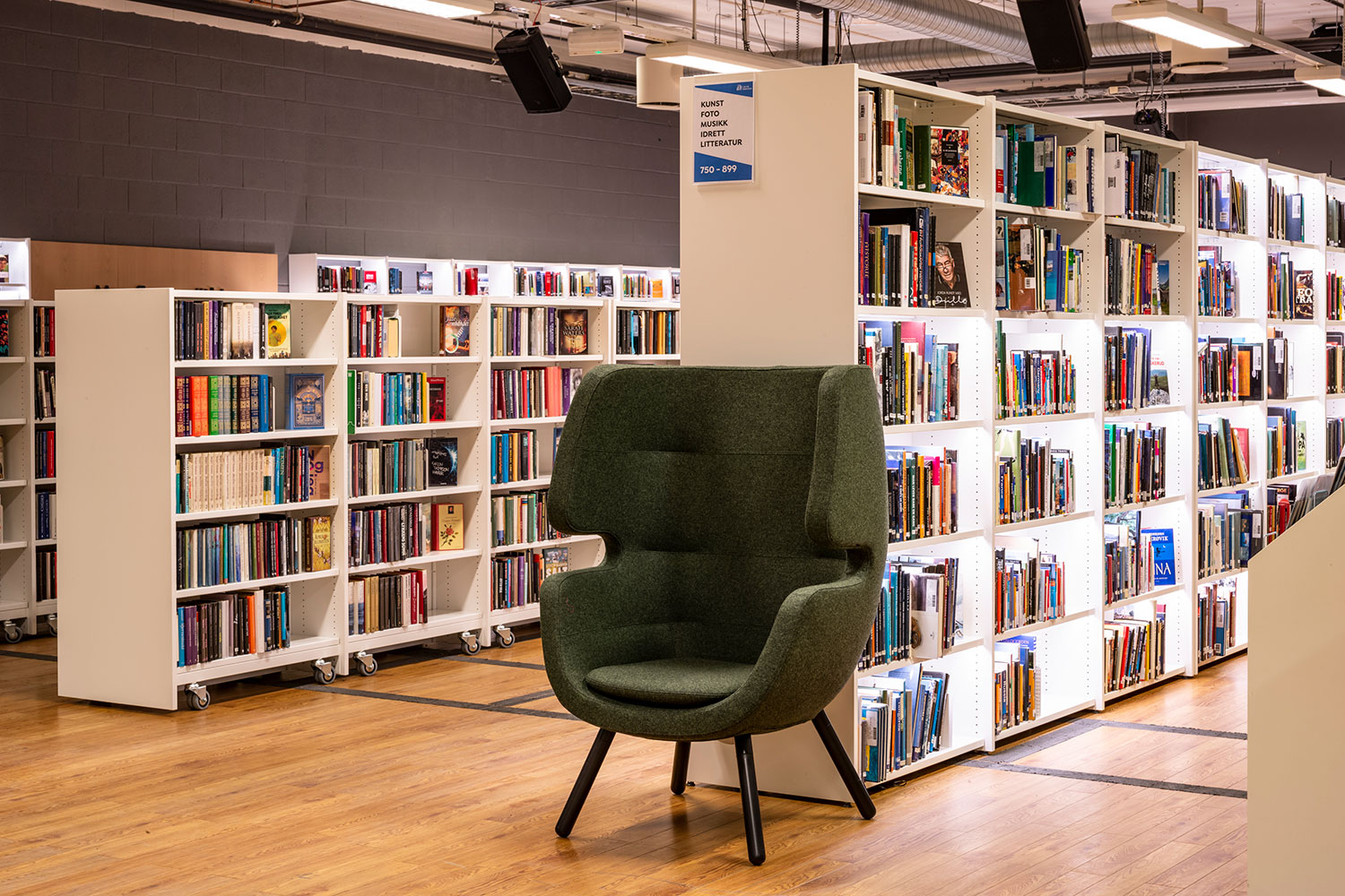 Der Bibliothek ist es gelungen, in einigen Teilen kompaktere Bereiche mit mehr Freiflächen in anderen Teilen der Bibliothek zu kombinieren, wobei der offene Raum größere Veranstaltungen und Versammlungen ermöglicht. Es gibt einen Raum, der speziell für Schulklassen und andere organisierte Aktivitäten für Kinder und Jugendliche während des Tages bestimmt ist. Für Studenten gibt es eine separate Abteilung mit einem kleinen Lesesaal und zwei Gruppenräumen.